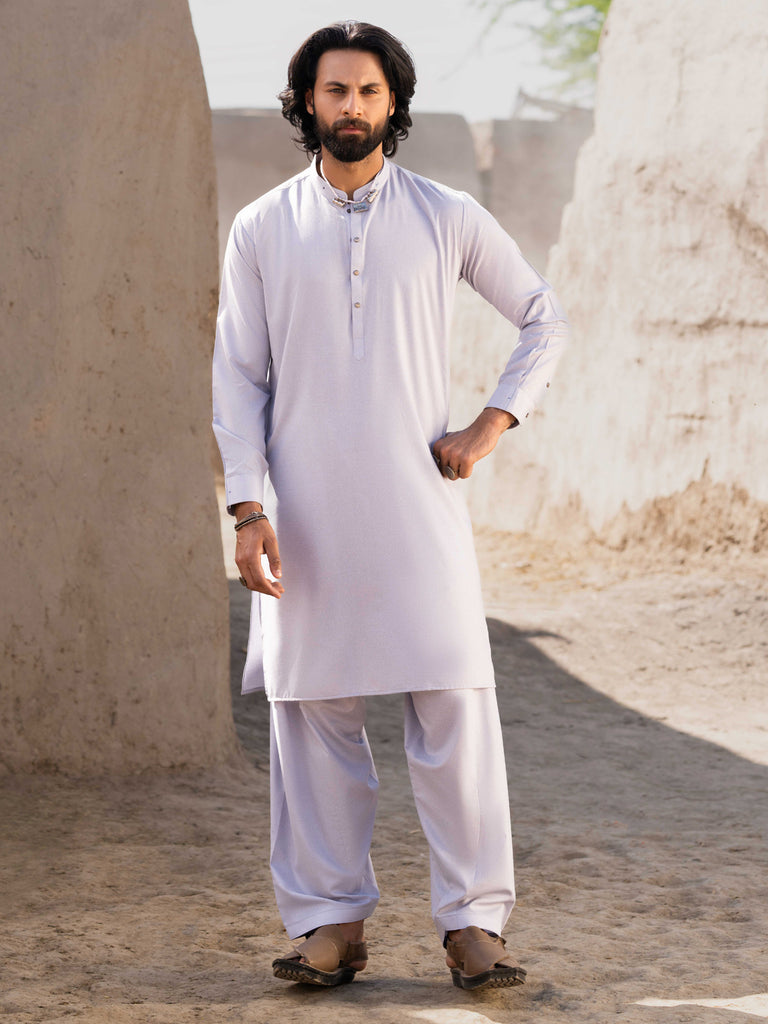LIGHT GREY BLENDED KURTA TROUSERS | AL-KT-NZ-04-3045A