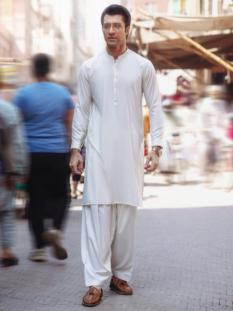 OFF WHITE BLENDED KAMEEZ SHALWAR | AL-KS-3212B/AM-6292A