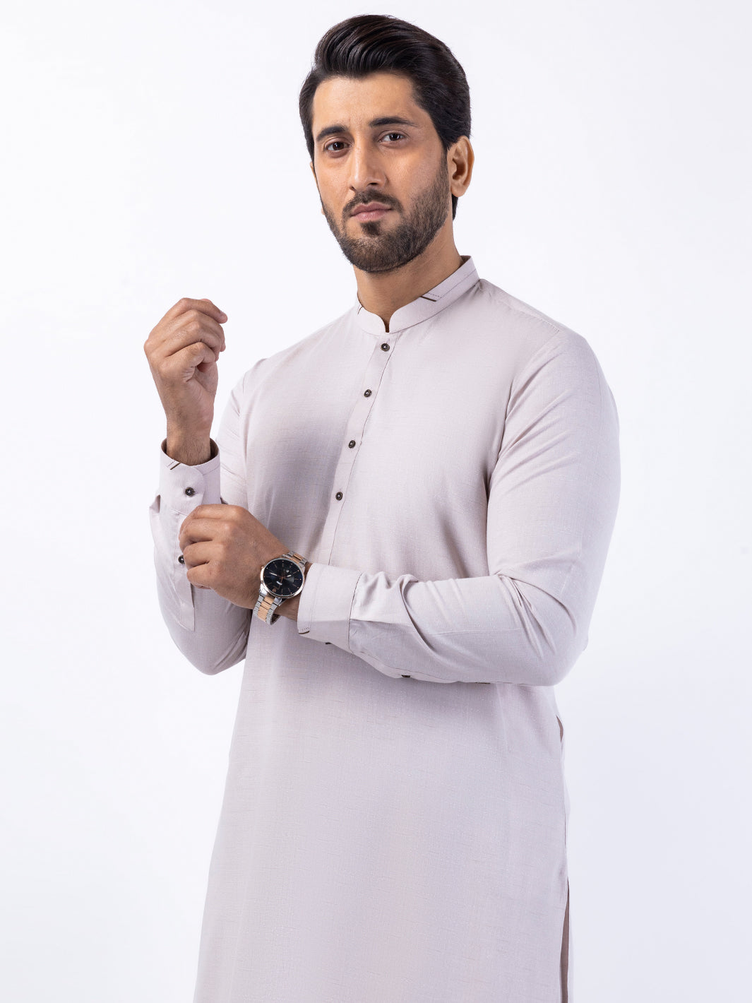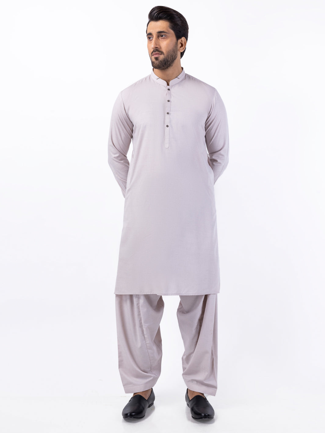Kameez Shalwar With Cut & Sew Details on Collar and Cuffs