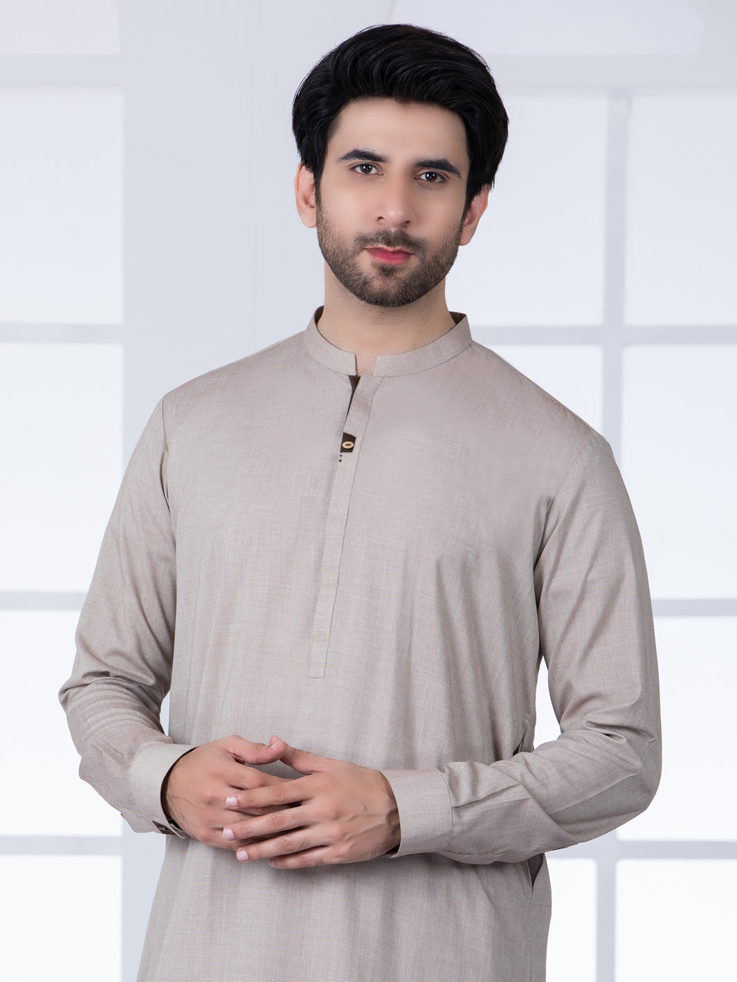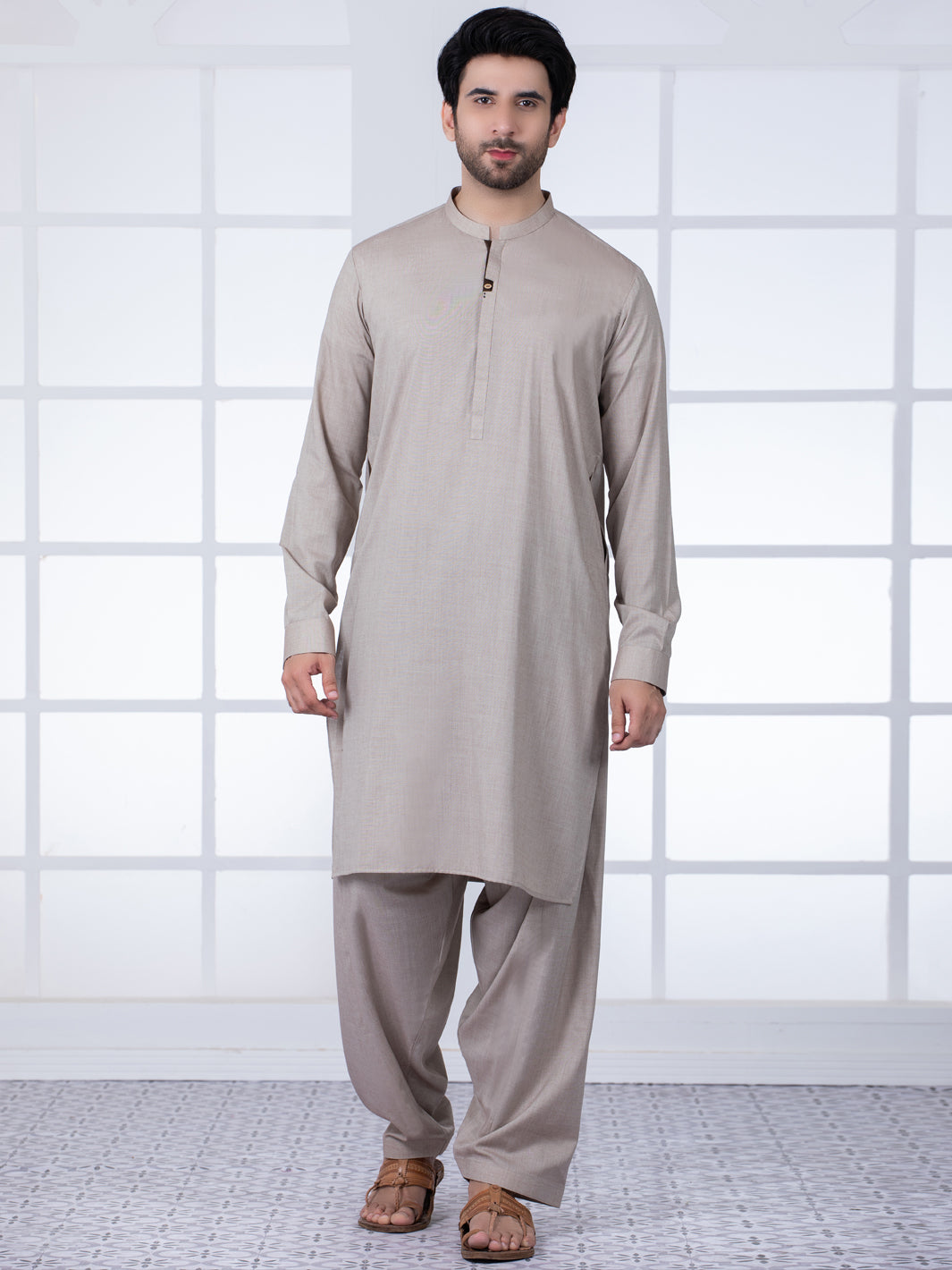 BEIGE POLYESTER KAMEEZ SHALWAR | AL-KS-NZ-2753/AM-5058C