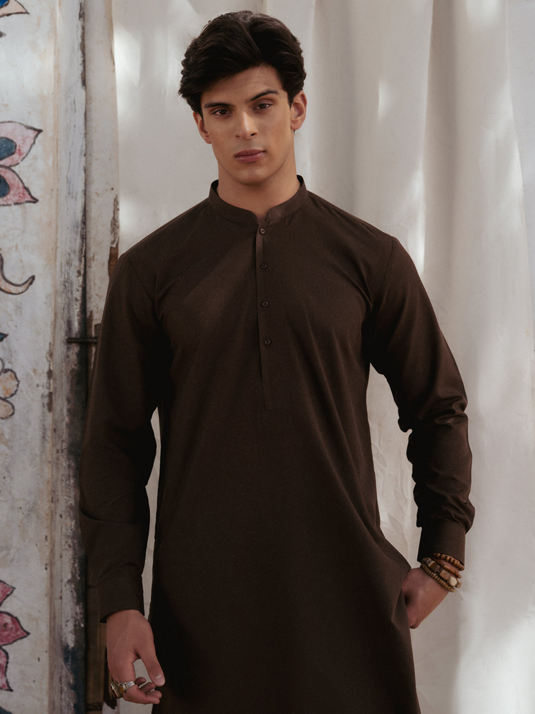 DARK BROWN BLENDED KURTA TROUSERS | AL-KT-3179/AM-6290B