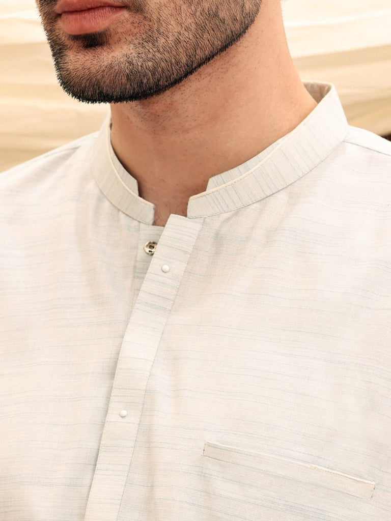 Light Blue Kurta Trouser With White Accent Details And Rivets