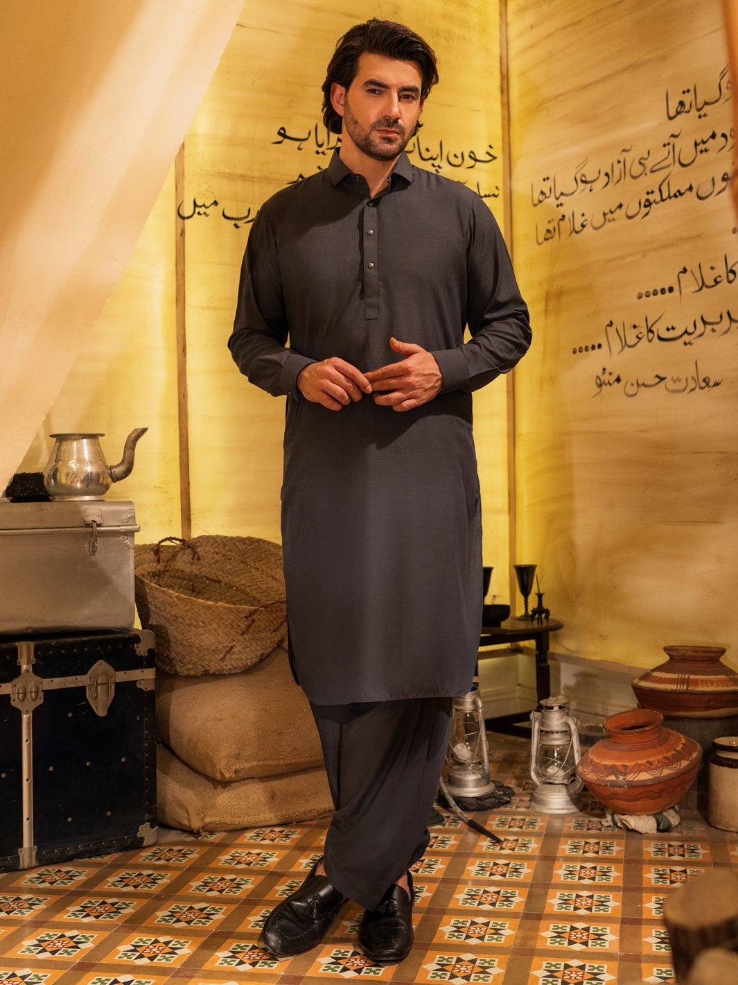 Classic fit kameez shalwar with minimal cut & sew and premium quality buttons