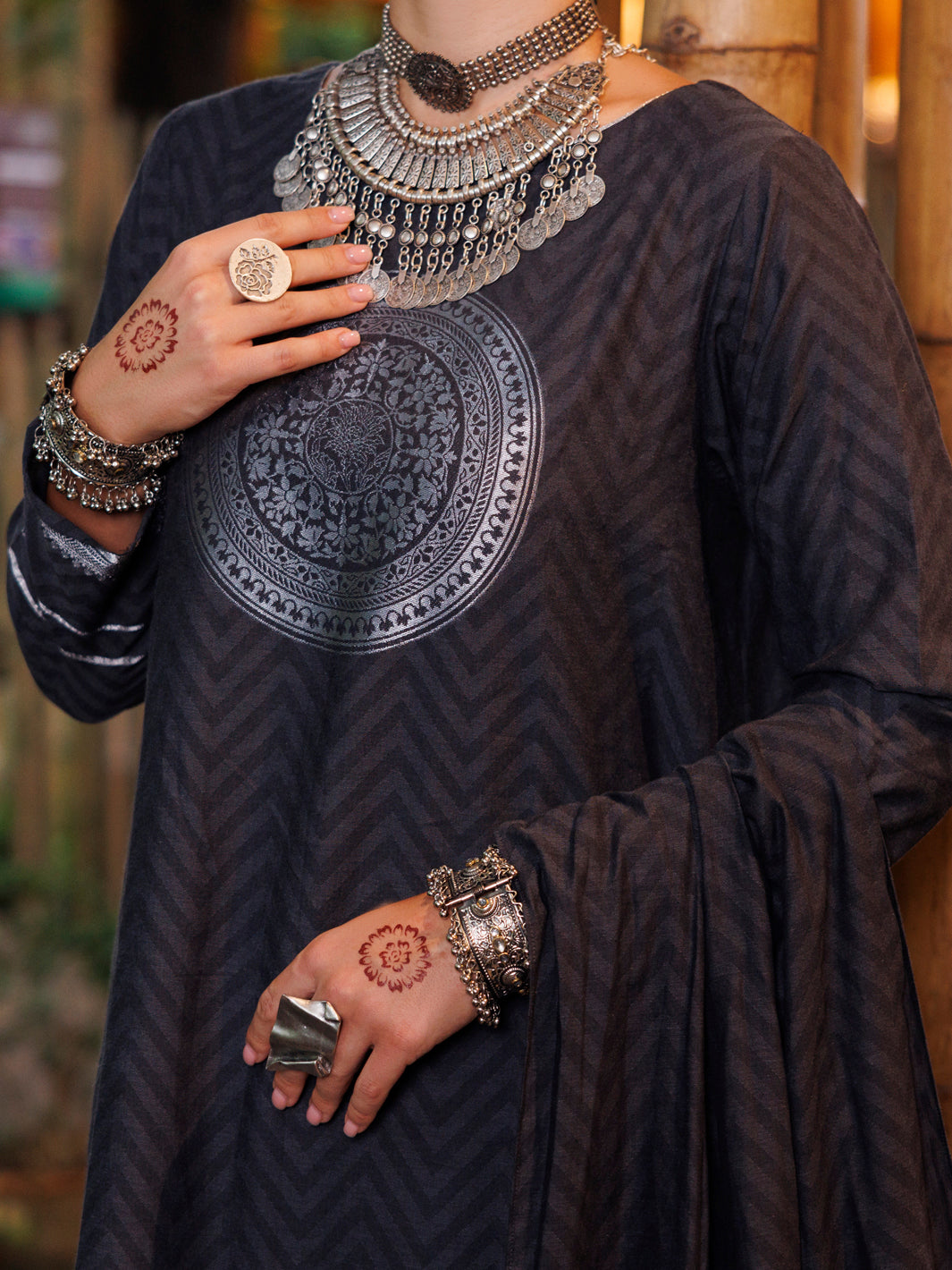 CHARCOAL GREY YARN DYED JACQUARD 3PC STITCHED | ALP-3PS-2022/S FB-2022A