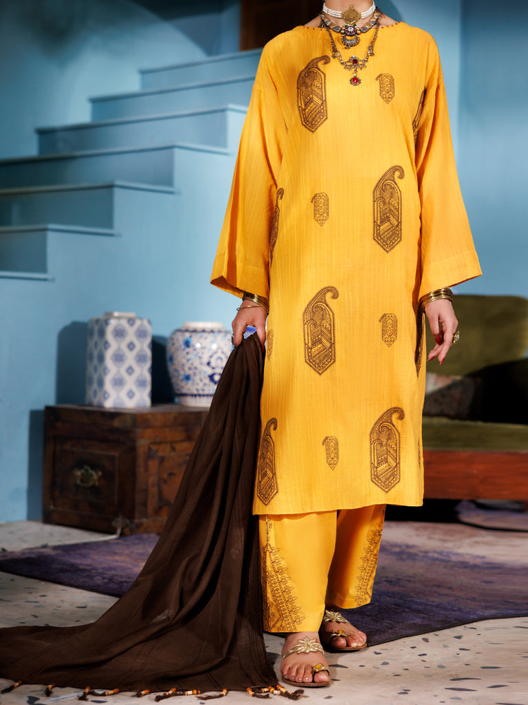 MUSTARD LINO KARA 3PC UNSTITCHED | ALP-3PS-1918 FB-1918A