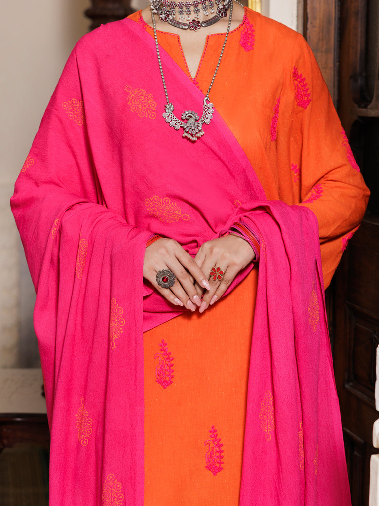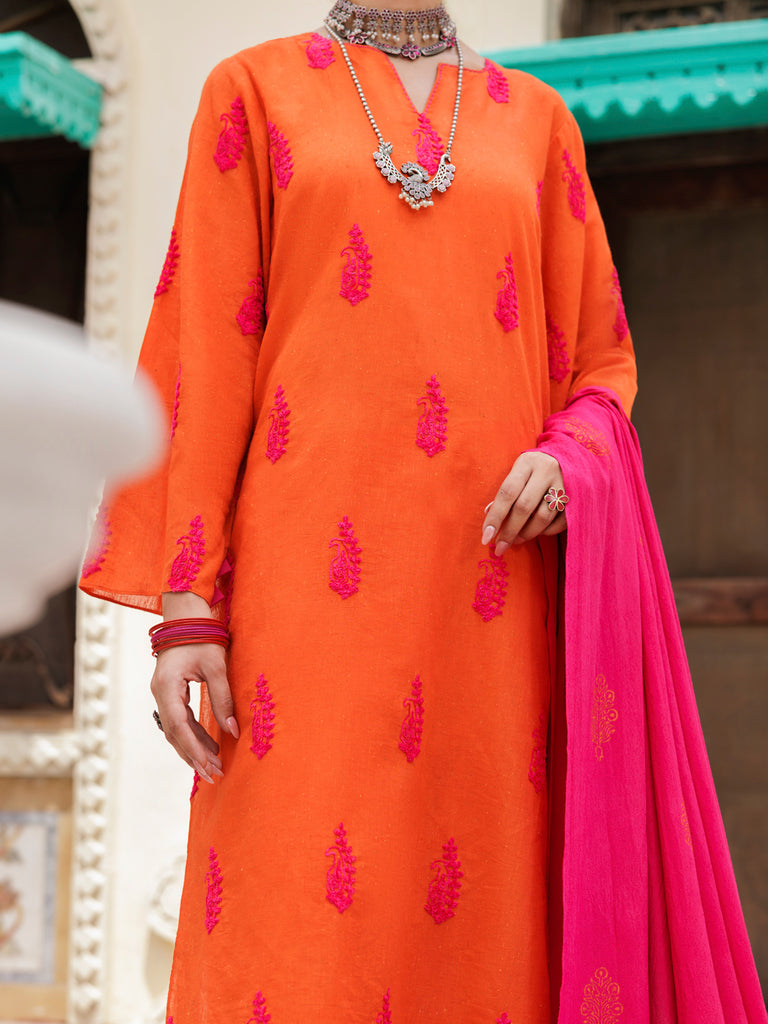 ORANGE YARN DYED 3PC UNSTITCHED | AWP-3PS-651 FB-651A