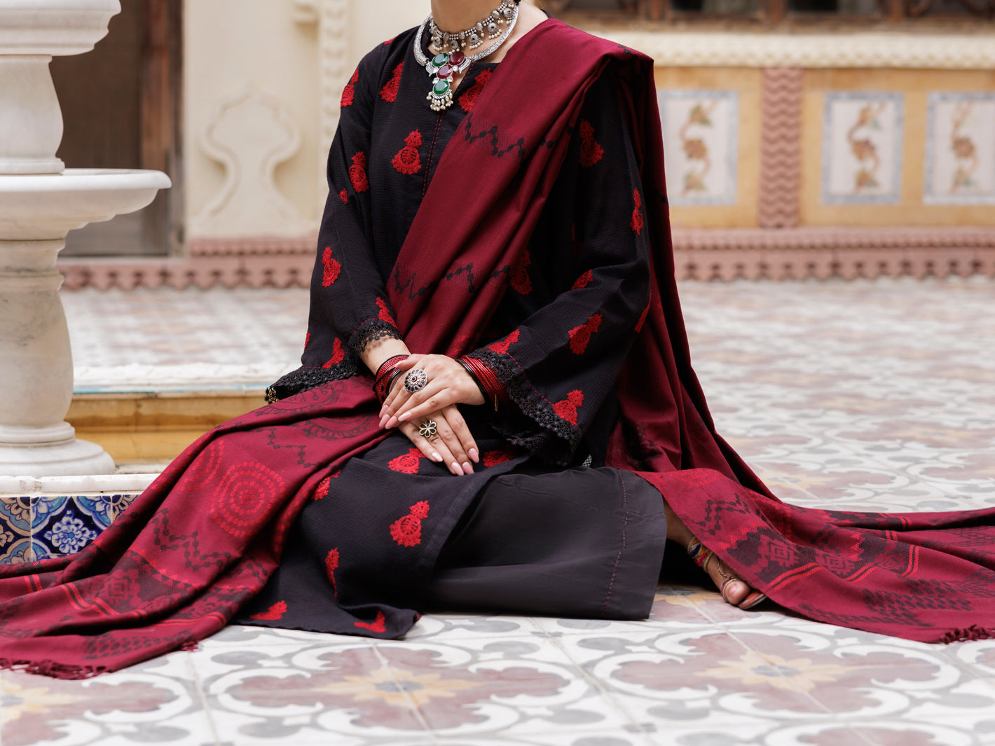 Yarn Dyed Jacquard Shawl: 1 Pc