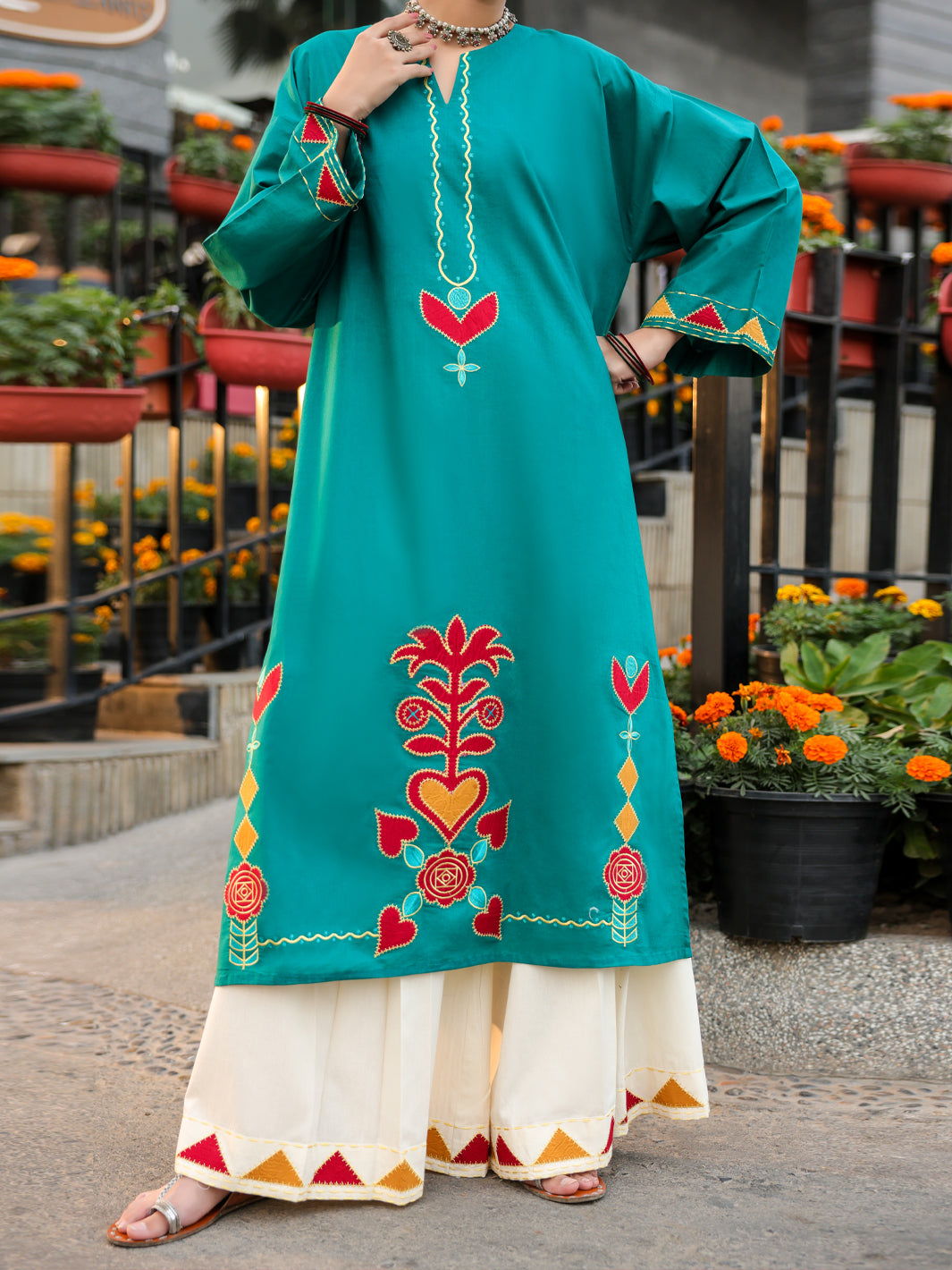 Long length shirt with applique work‚