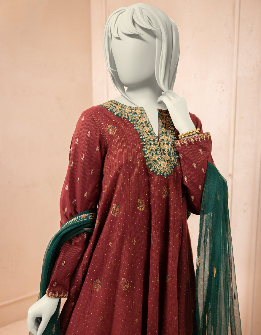 MAROON TEXTURED 3PC STITCHED | JGK-S-JTF-25-757 FB/