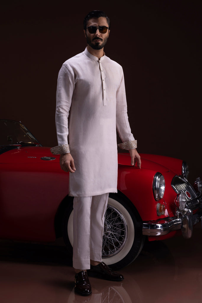 WHITE BLENDED KURTA TROUSERS | CCMKS-NZ-39426-A2-MILTON