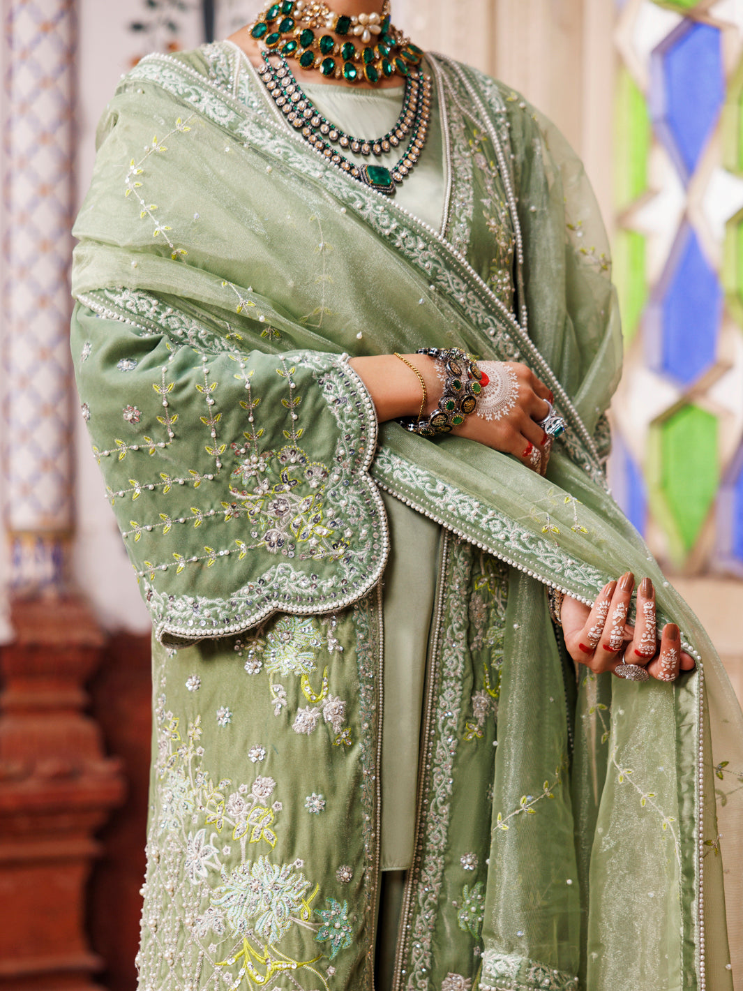 PISTACHIO GREEN VELVET 3PC STITCHED | AL-3PS-LS-497/AM-3002B