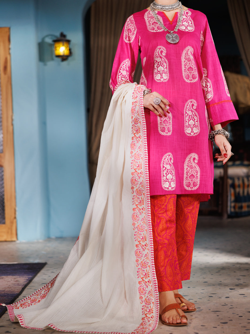 PINK COTTON DOBBY 3PC STITCHED | ALP-3PS-1920/S FB-1920A