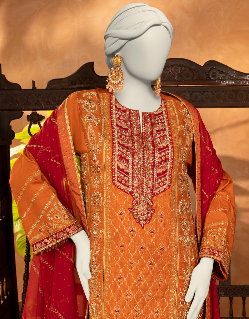RUST RAW SILK 3PC STITCHED | JJPW-S-JPS-25-3917 F