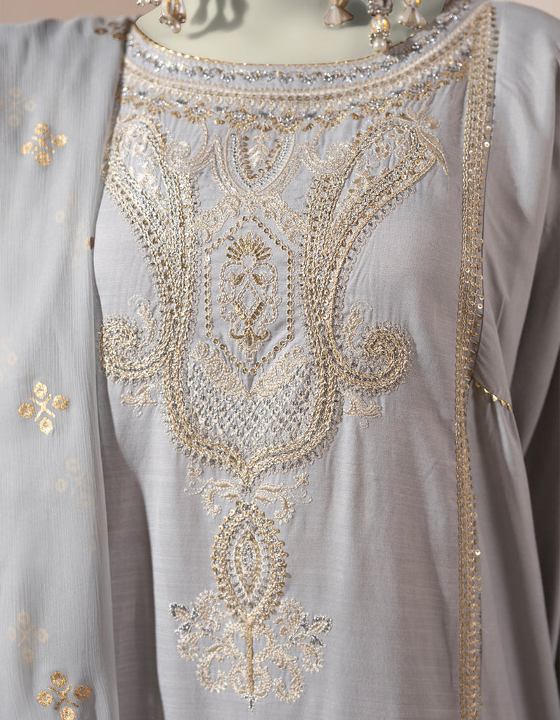 GREY ORGANZA 3PC STITCHED | JJPW-S-JPS-25-3933 F