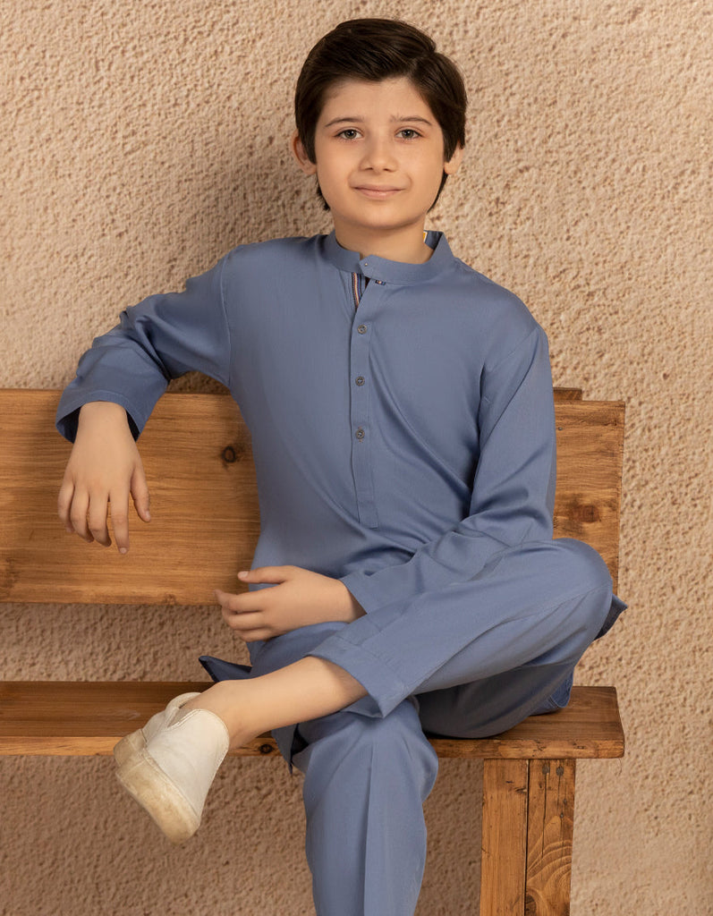 A neat and comfortable periwinkle blended casual kurta trouser set designed for everyday wear. Its simple look makes it easy to style for casual gatherings or regular use.