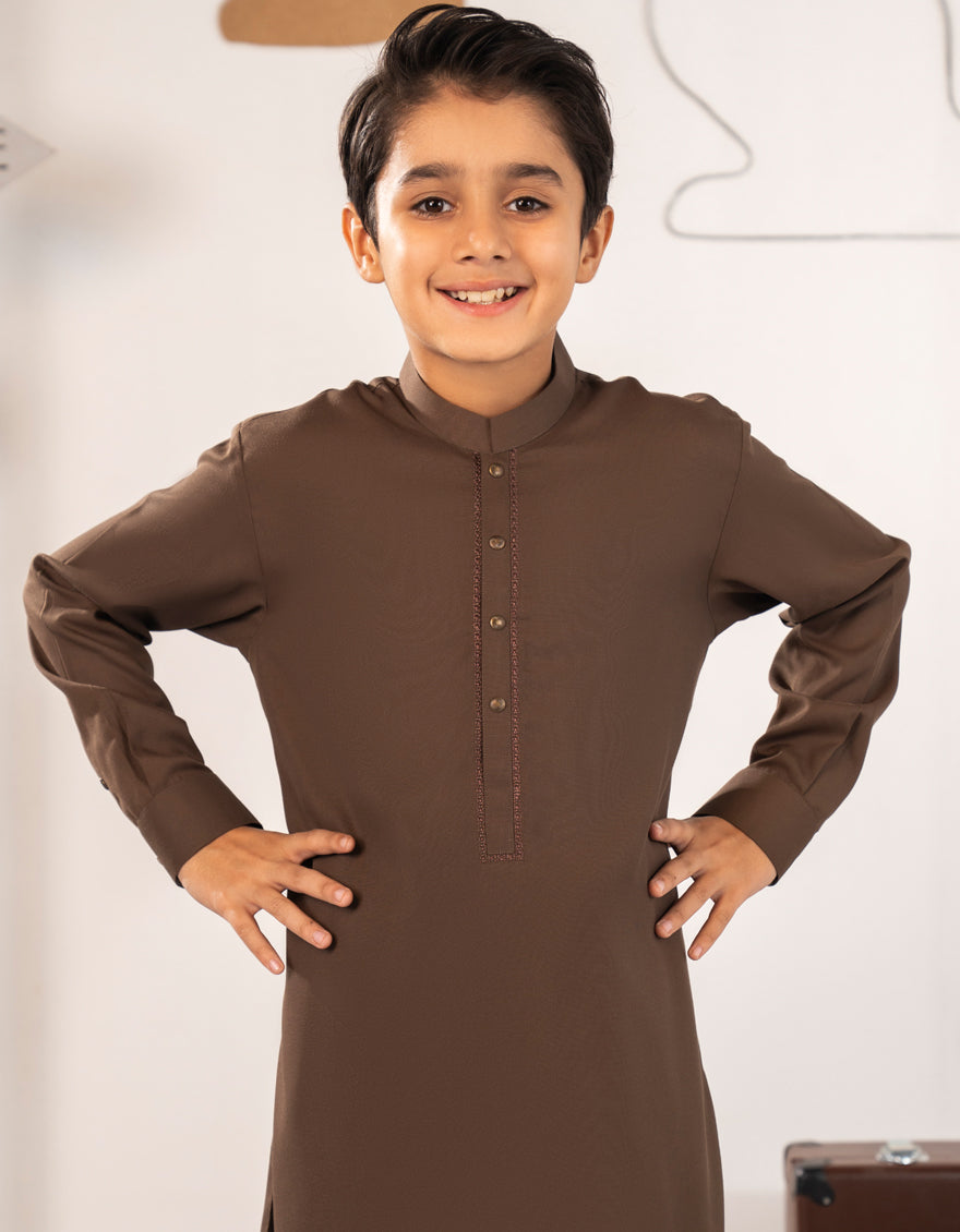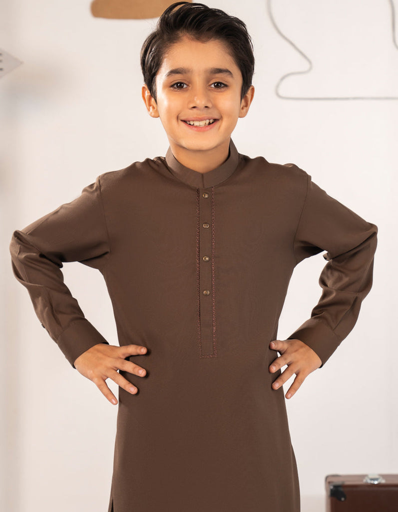 Made for the modern young man, this Kameez Shalwar is a perfect blend of style and comfort. Its simple yet elegant design makes it suitable for a range of occasions, ensuring that your little one looks his best.