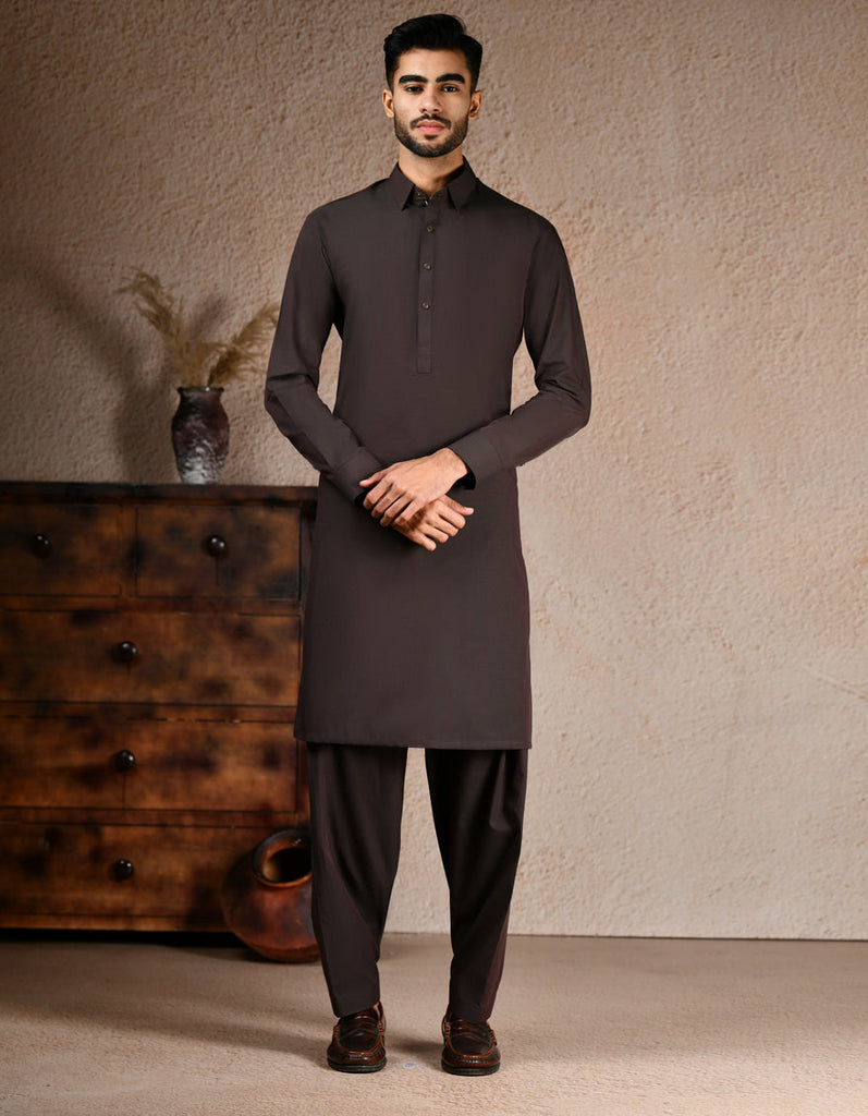 BROWN BLENDED KAMEEZ SHALWAR | JJKS-A-47005-R10-AP/