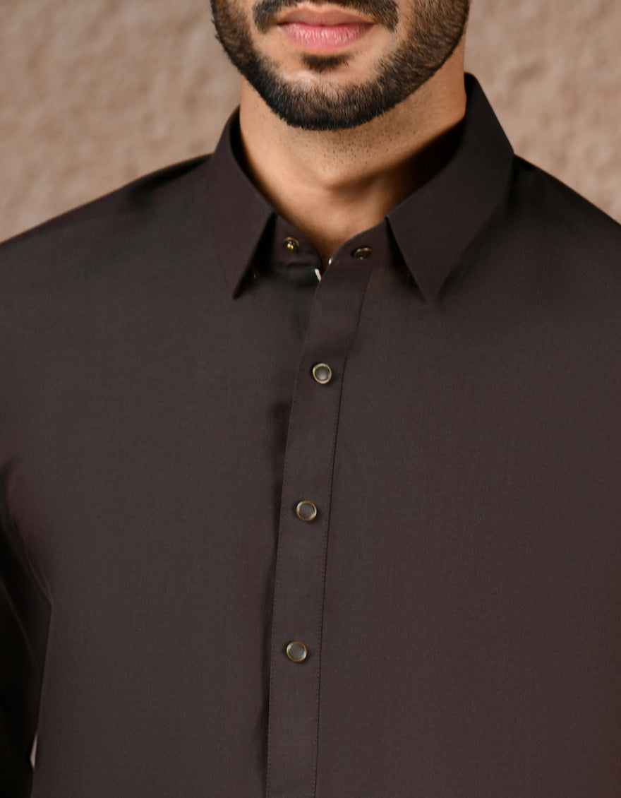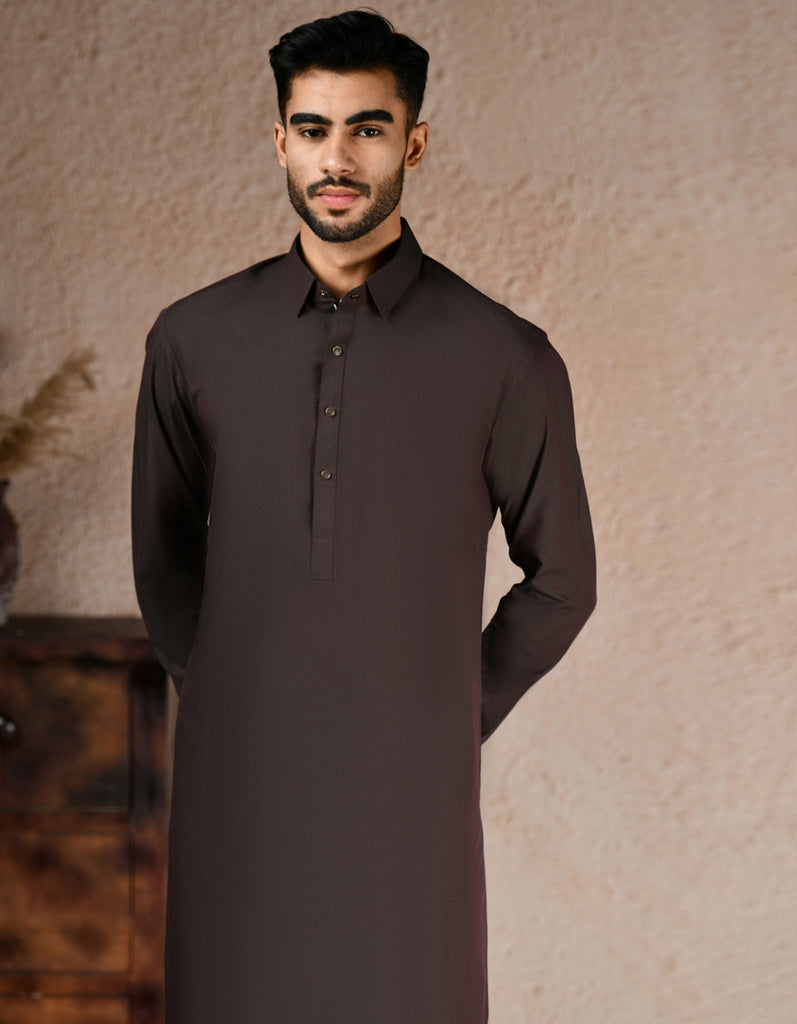 This basic men's Brown Blended Casual Kameez Shalwar epitomizes effortless sophistication and classic charm, making it a wardrobe staple for various cultural and casual events.