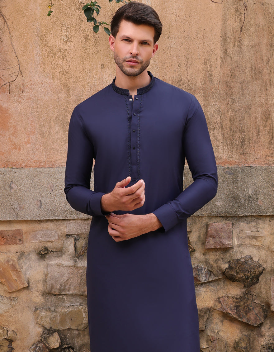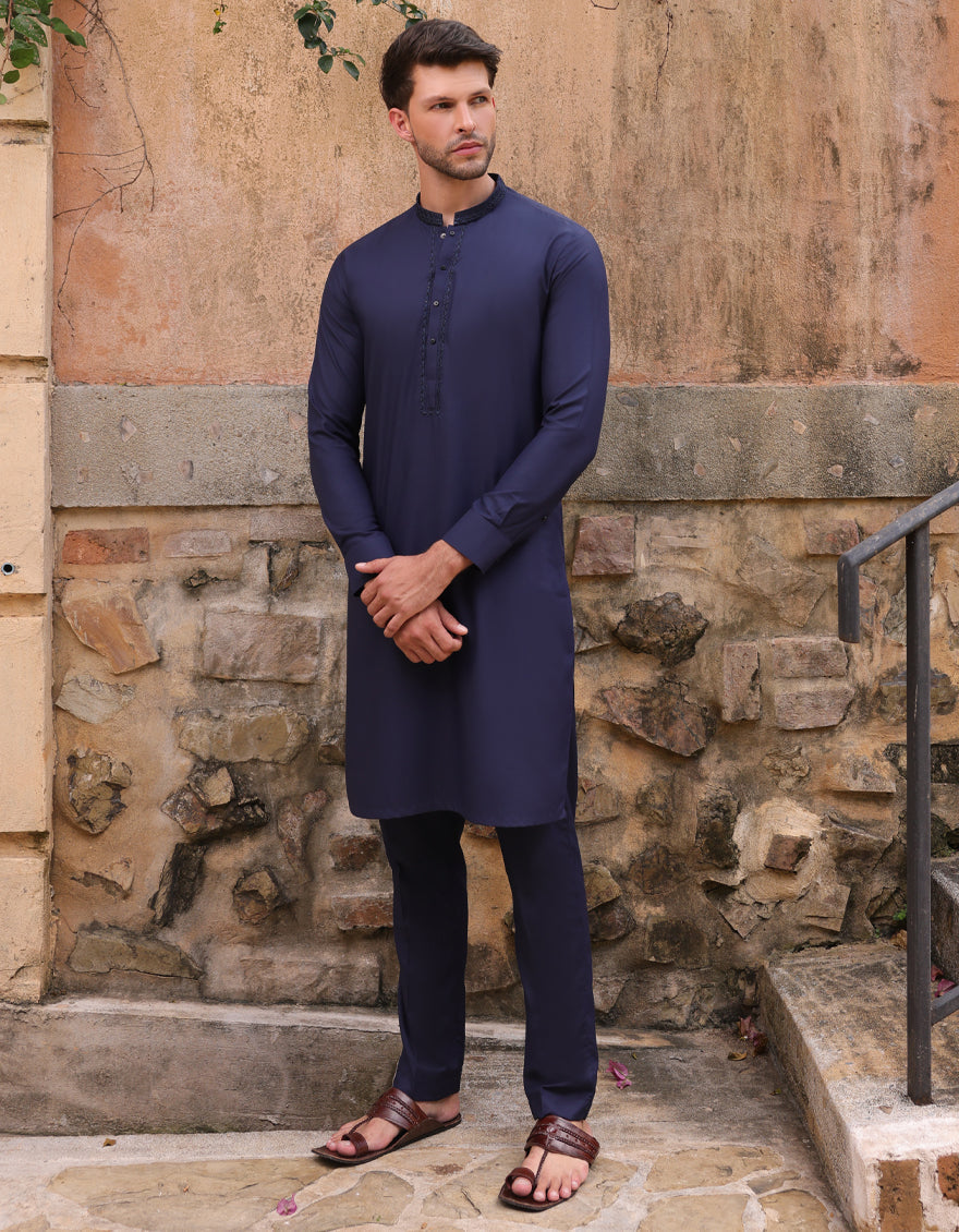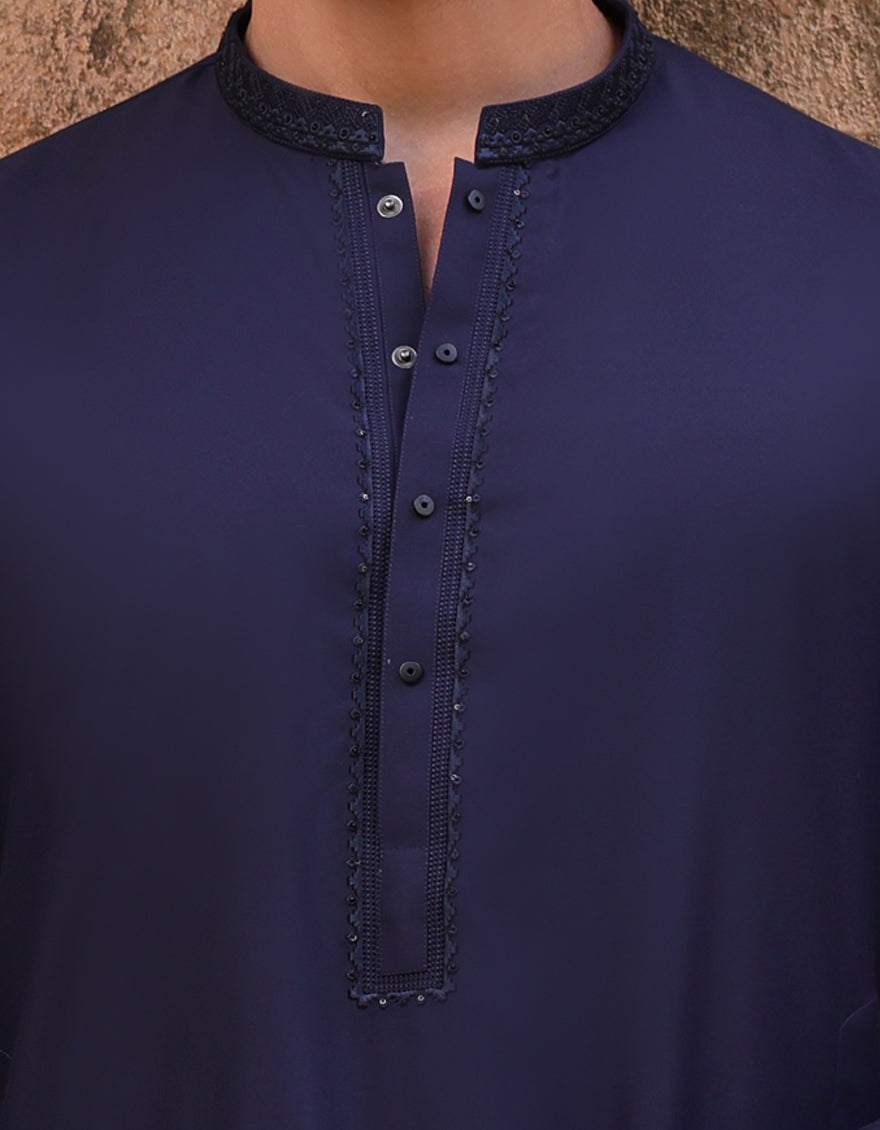 With subtle detailing and a refined silhouette, this Navy Blue Blended Semi-Formal Kameez Shalwar embodies understated elegance, perfect for semi-formal gatherings and events.