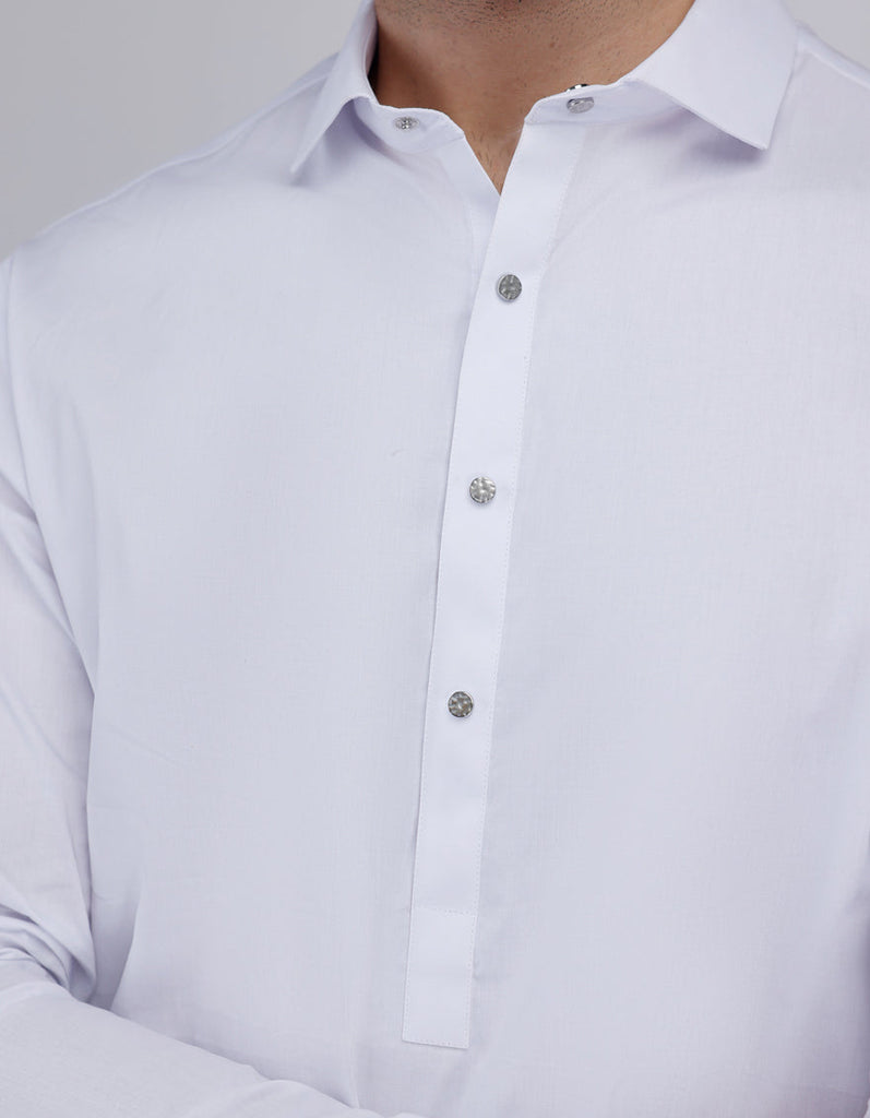 This basic men's White Cotton Casual Kameez Shalwar epitomizes effortless sophistication and classic charm, making it a wardrobe staple for various cultural and casual events.