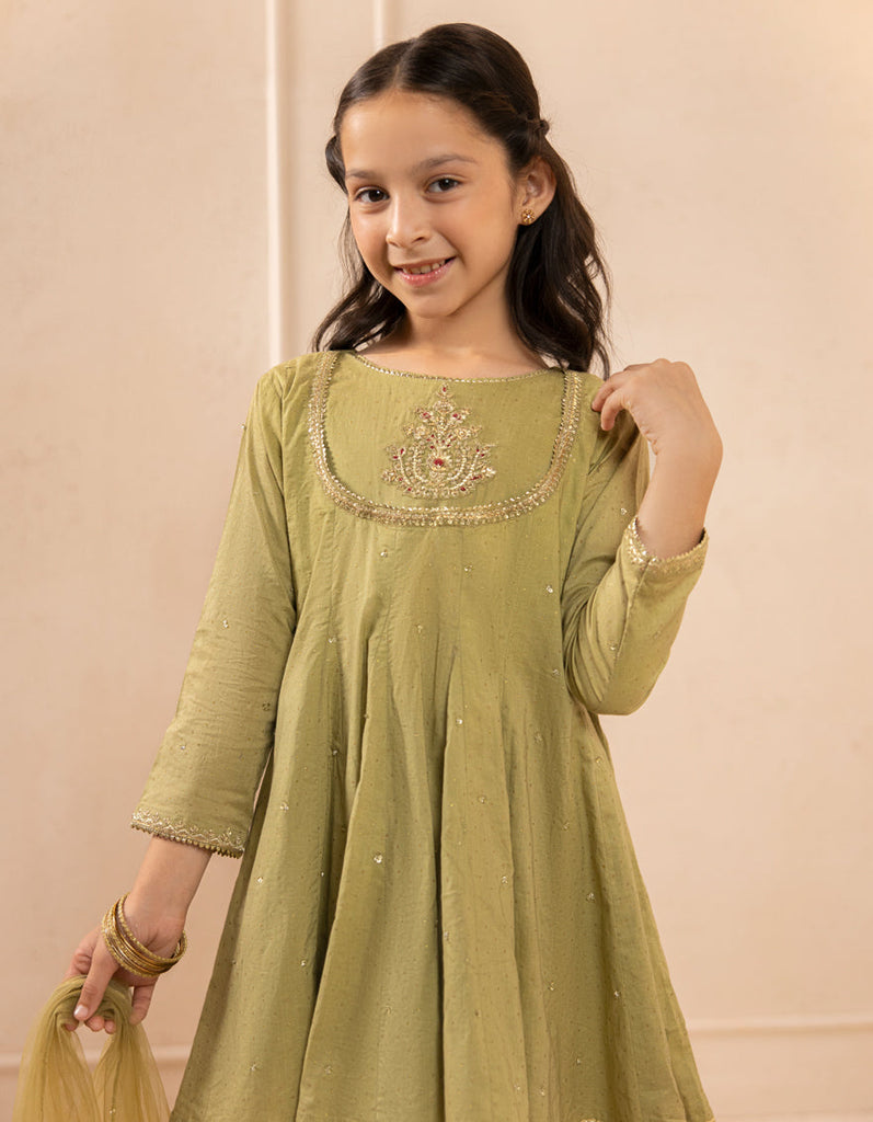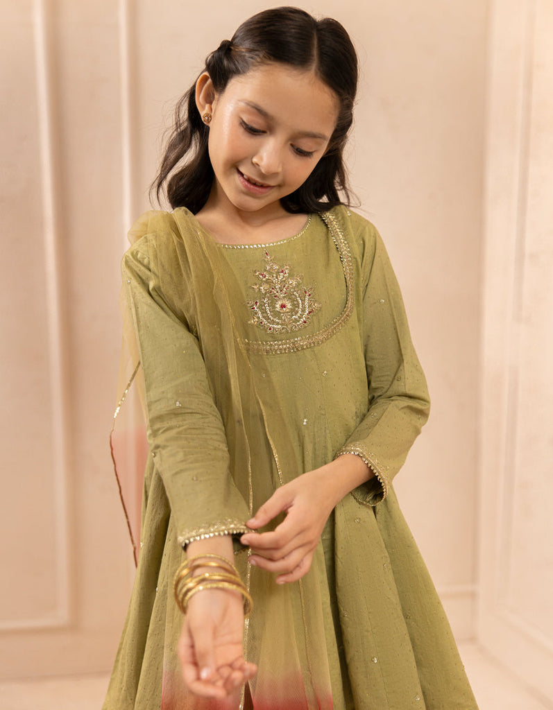 GREEN LAWN SILK 3PC STITCHED | JGKL-S-JGF-25-1916 F