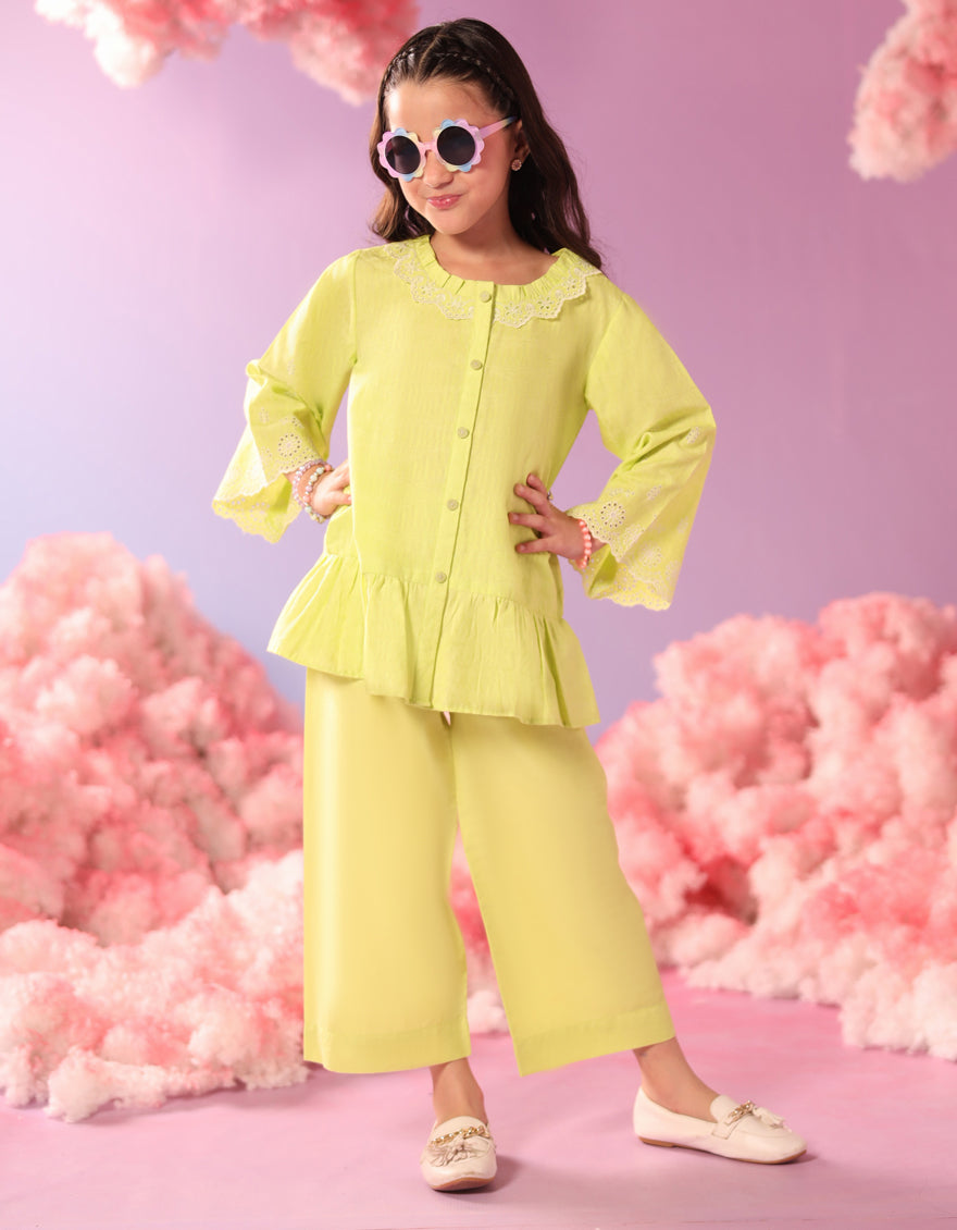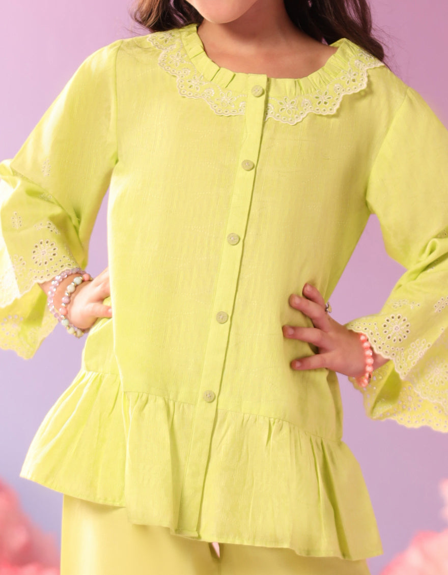 Neckline: Round With Frill Embroidery Collar