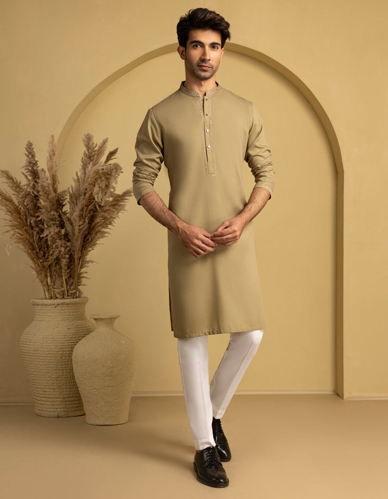 OLIVE COTTON KURTA | JJK-S-46671/S25/JJ97