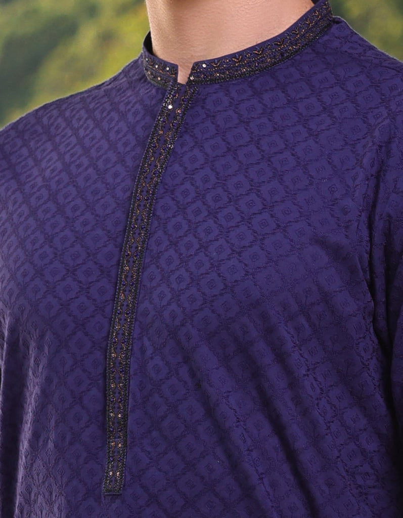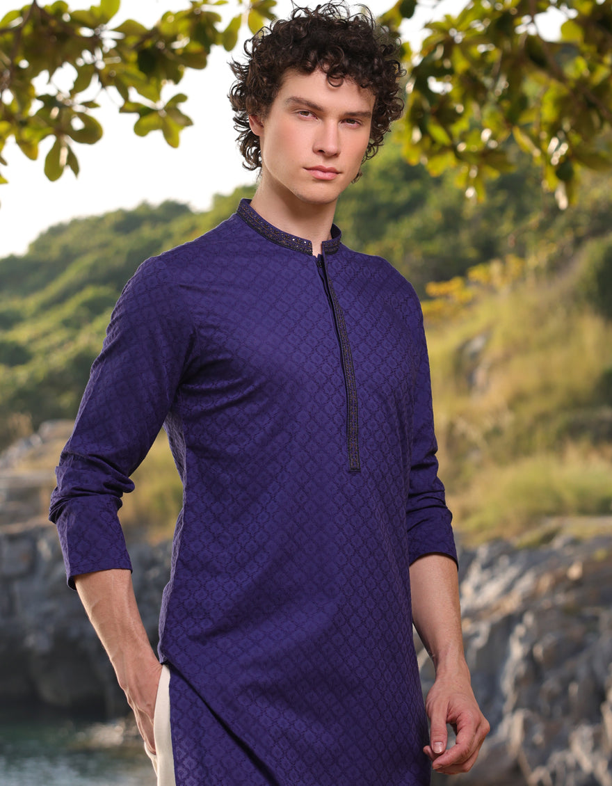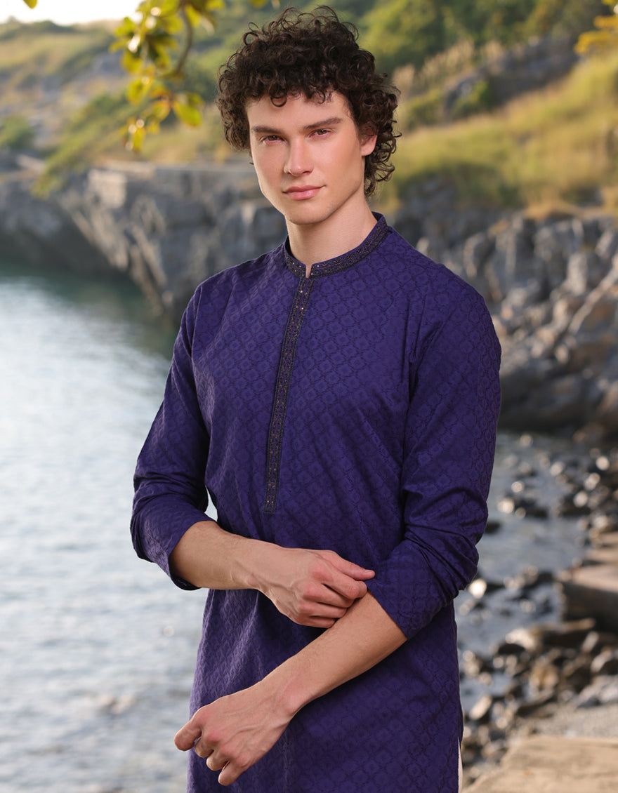 This men's Blue Cotton Formal Kurta epitomizes traditional charm and modern sophistication, featuring timeless designs, exquisite fabrics, and meticulous craftsmanship, perfect for adding a touch of cultural refinement to any occasion.