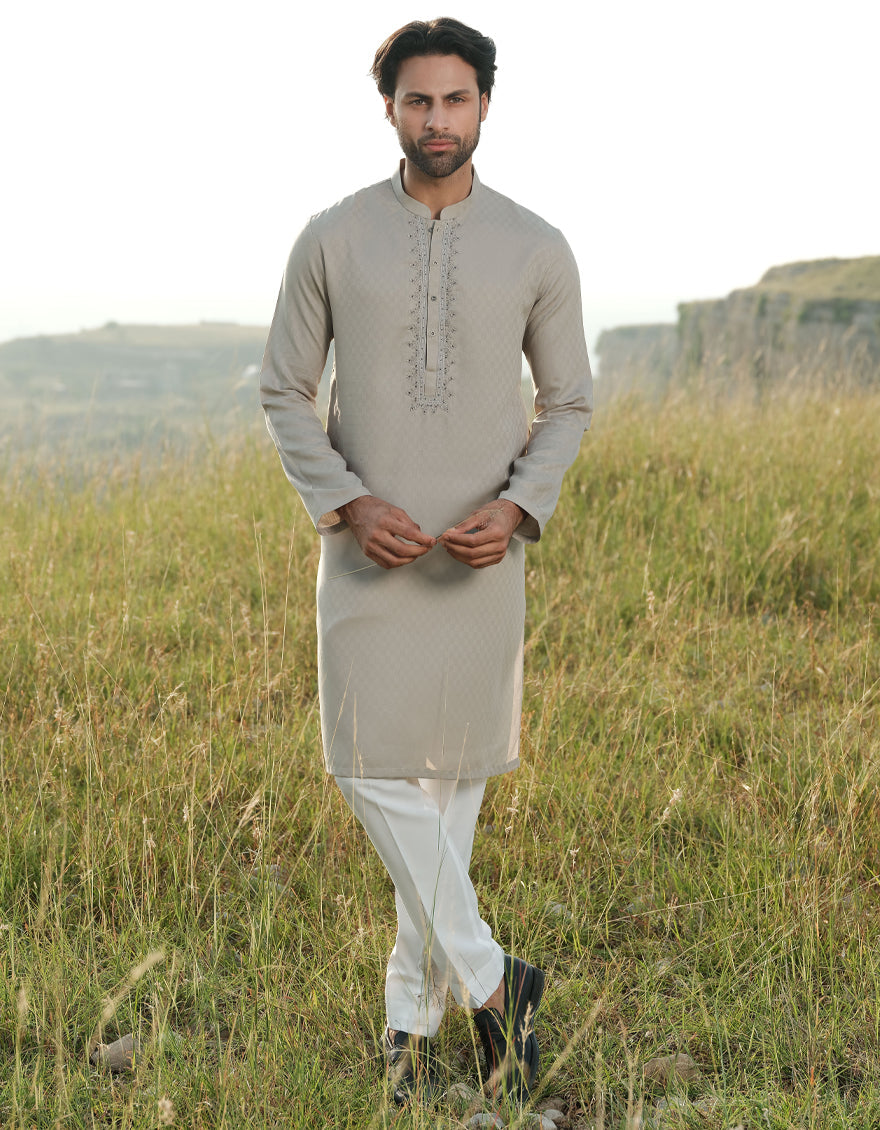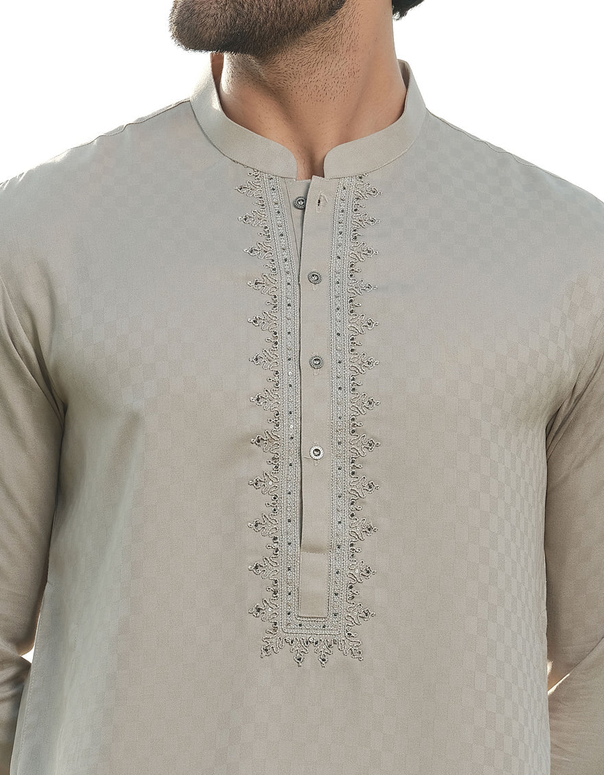This men’s Jade Green Blended Formal Kurta combines traditional style with a modern touch, featuring classic designs, fine fabric, and careful craftsmanship—perfect for any special occasion
