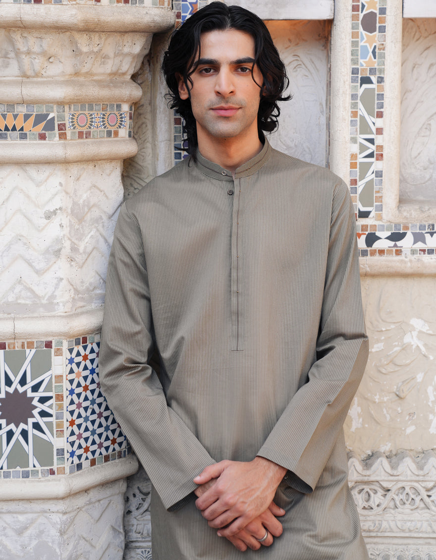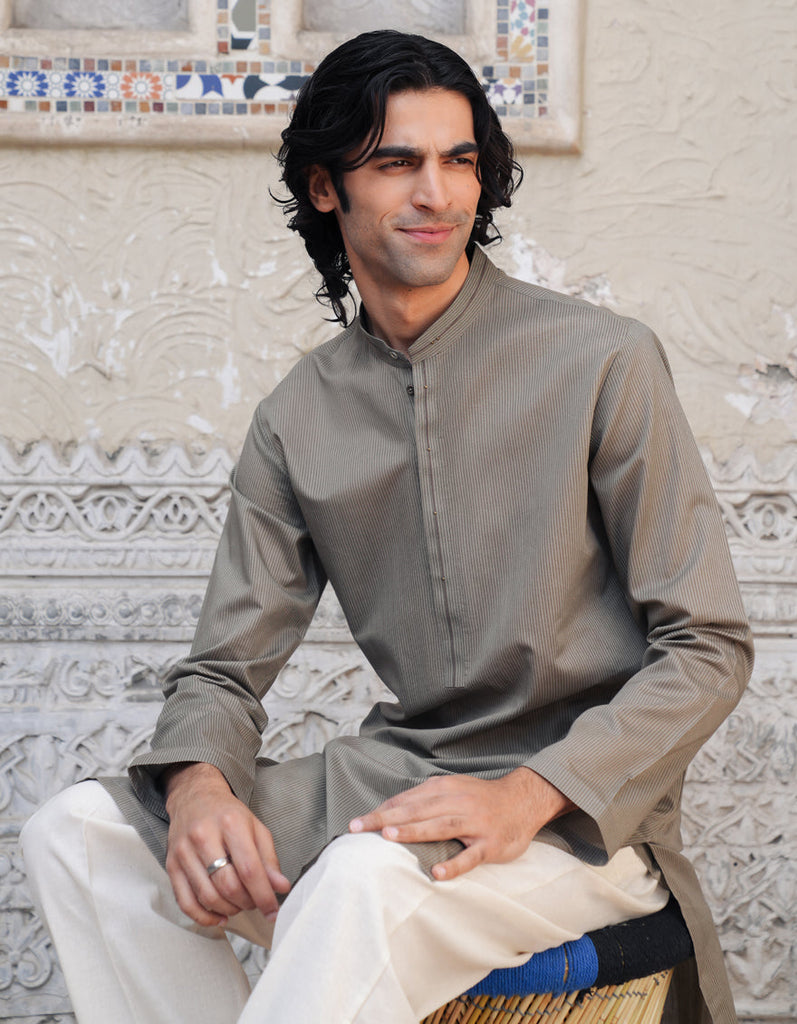 Simple yet stylish, this Light Brown Cvc Casual Kurta offers timeless elegance and versatility, perfect for a range of occasions and settings.