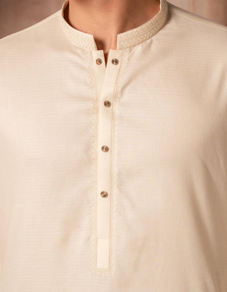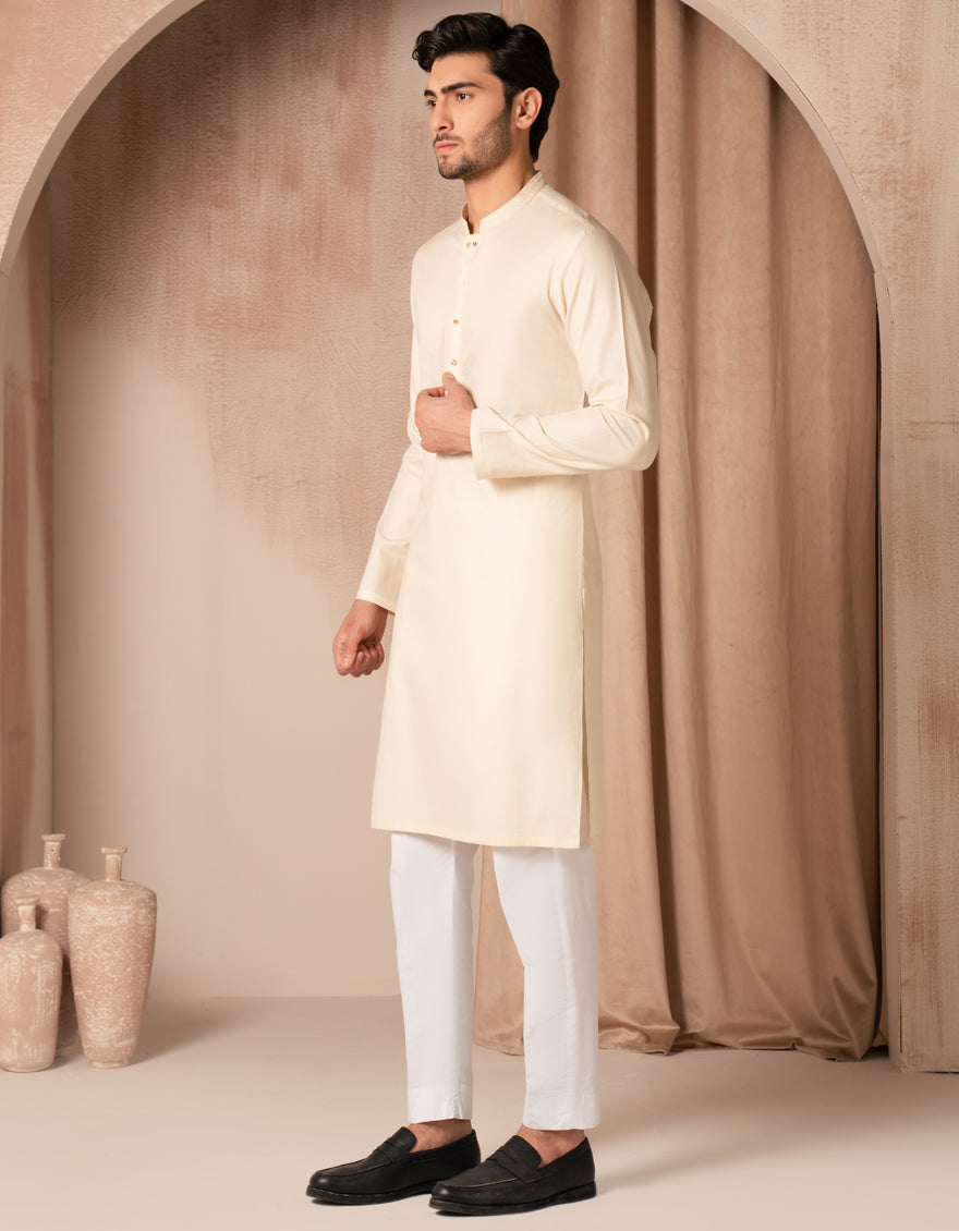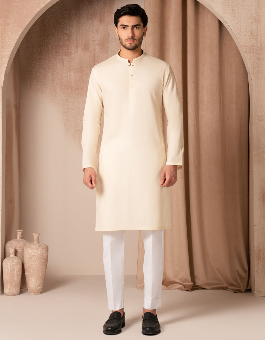 This fawn cotton semi-formal kurta offers a neat, stylish look that works well for family gatherings, dinners, or casual events. Easy to wear and effortlessly smart.