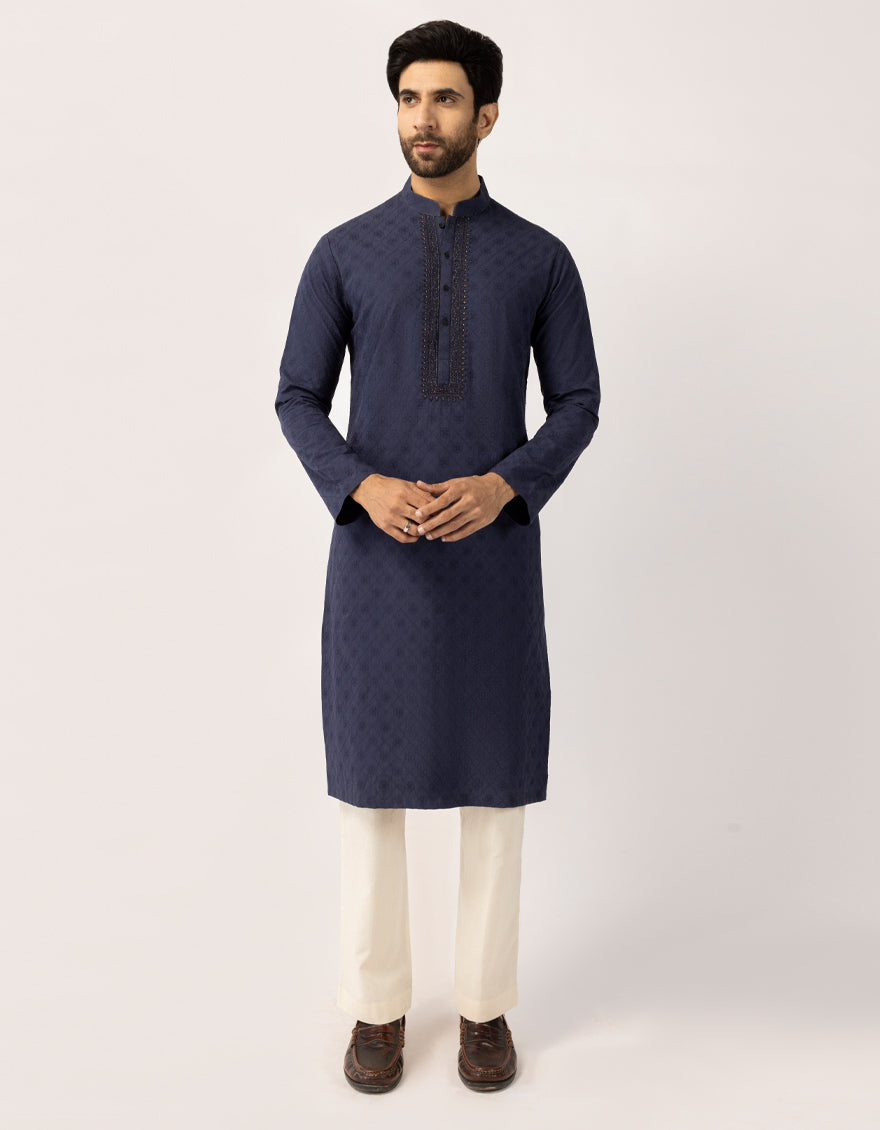 Designed for both tradition and modern style, this Blue Cotton Formal Kurtais a all-time favorite and versatile choice.