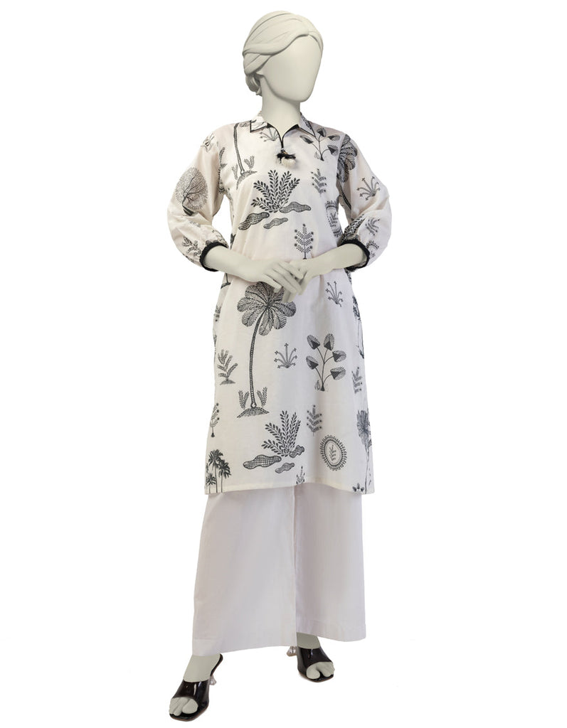WHITE LAWN KURTI | JJLK-S-JSS-25-389 FB/TRIBAL TREASURES-1