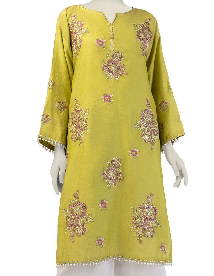 GREEN COTTON NET KURTI | JJLK-S-JFS-25-204 FB/ELFESYA-04