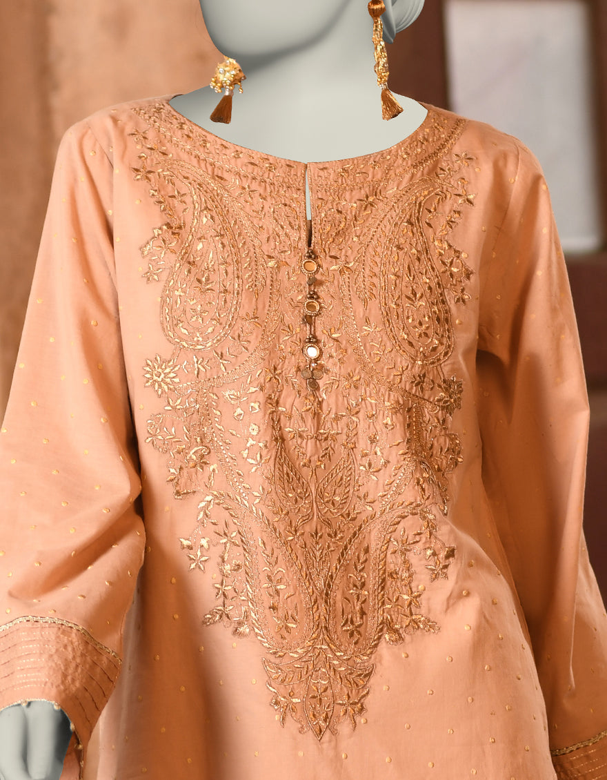 BEIGE LAWN KURTI | JJLK-S-JSS-25-333 FB/ FOIL ZARI-01