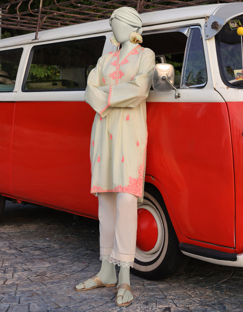 YELLOW LAWN KURTI | JJLK-S-JSS-25-349 FB/CHIKAN KARI NEON-01