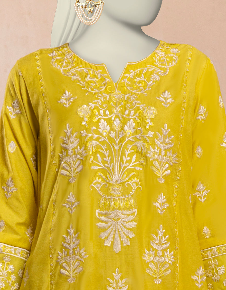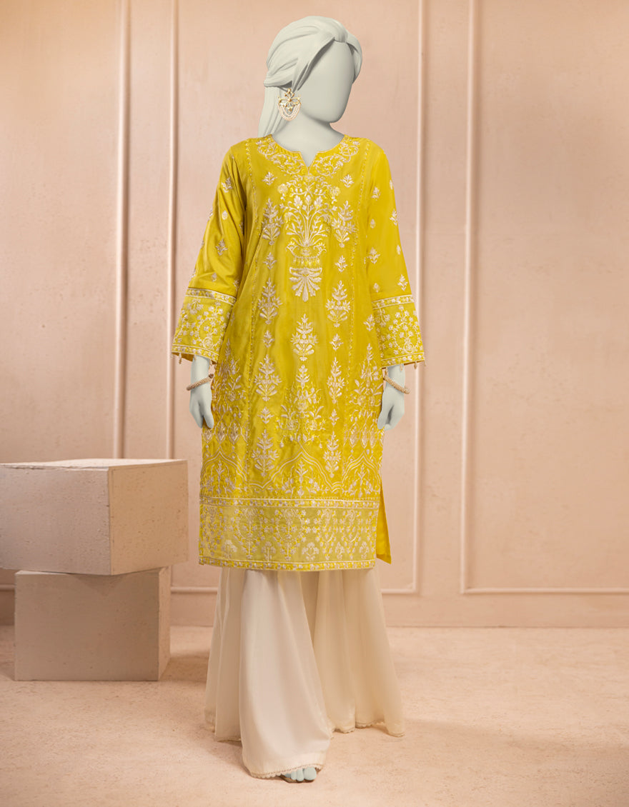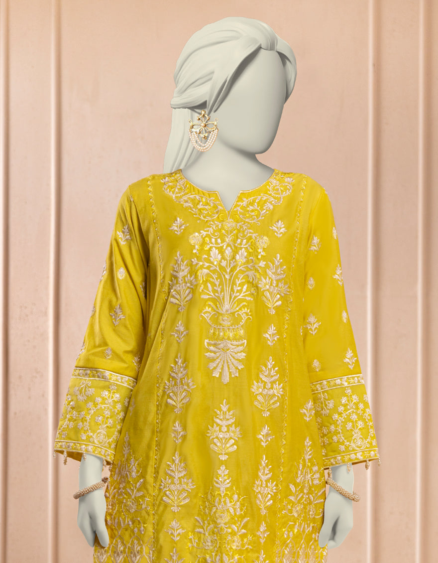 YELLOW COTTON NET KURTI | JJLK-S-JFS-25-219 FB