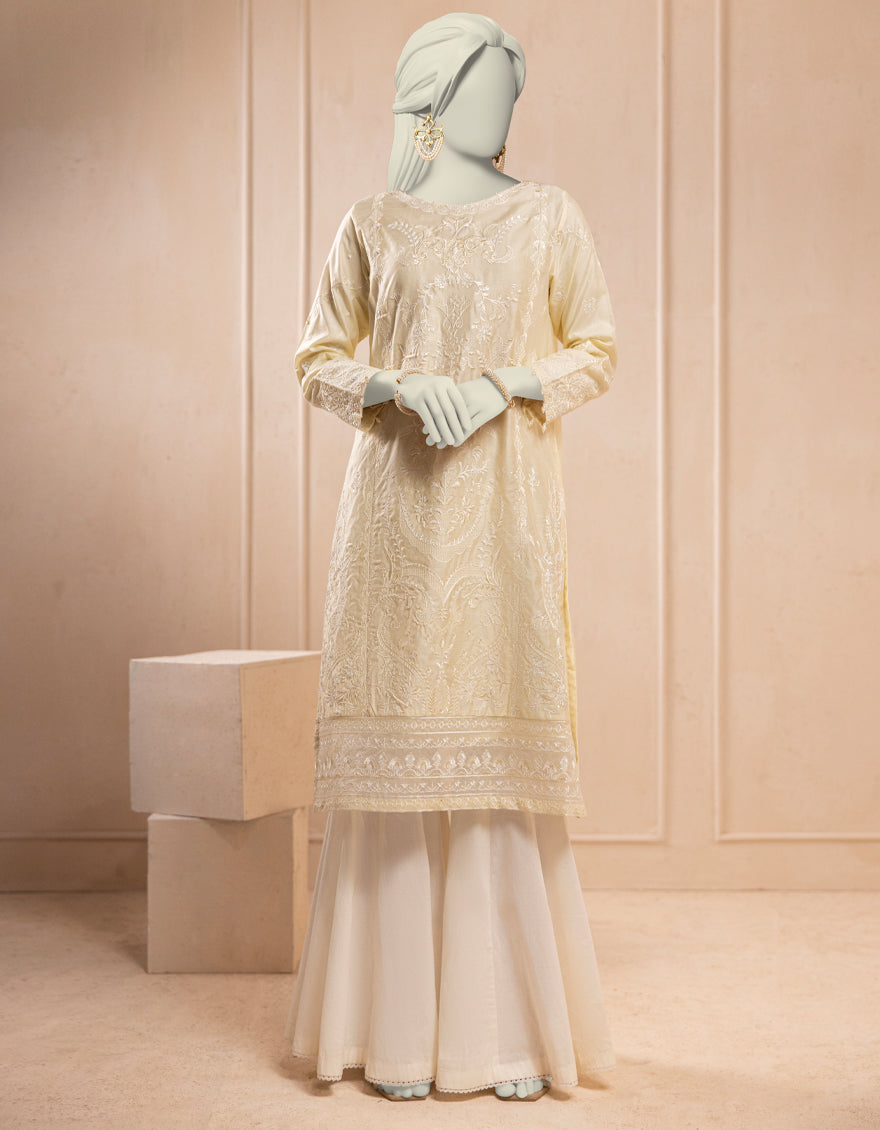 OFF WHITE COTTON NET KURTI | JJLK-S-JFS-25-220 FB
