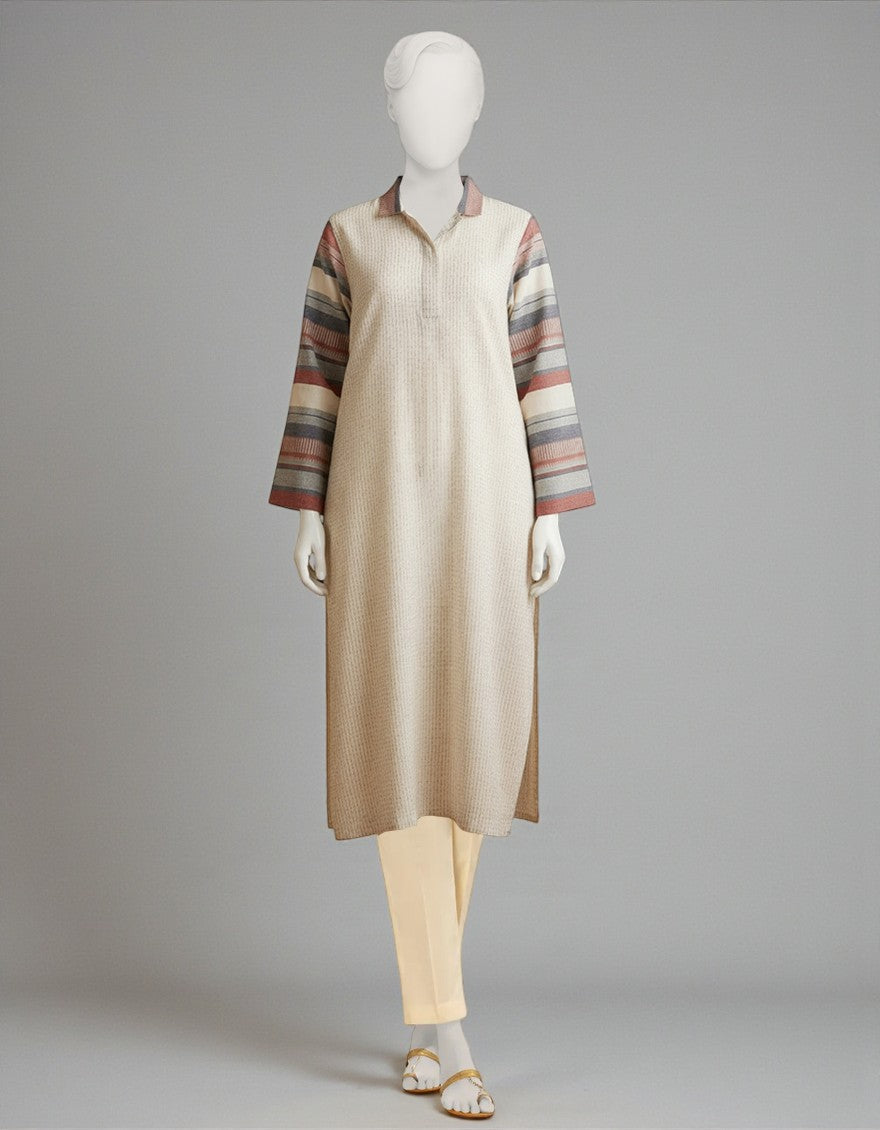 OFF WHITE JACQUARD KURTI | JJLK-S-JSS-25-393 FB/KANTHA-01