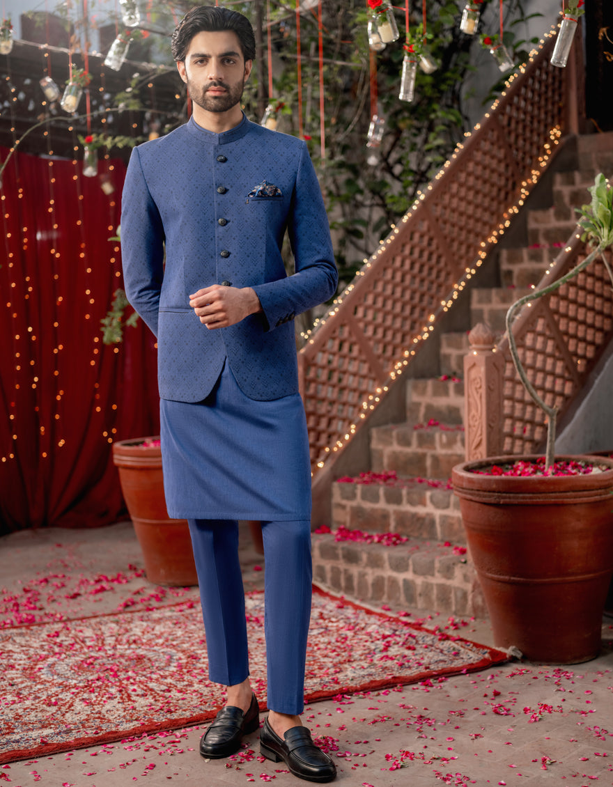 BLUE BLENDED PRINCE COAT | JJPJKP-A-48138/S24/JMR-3363A-FL