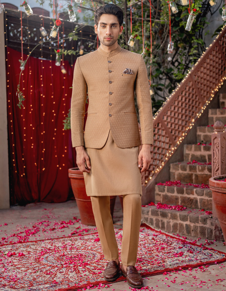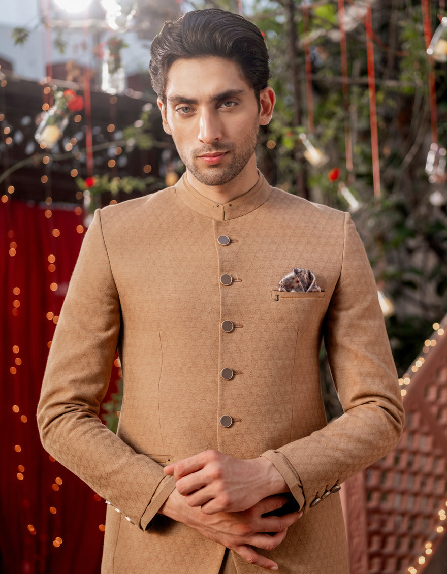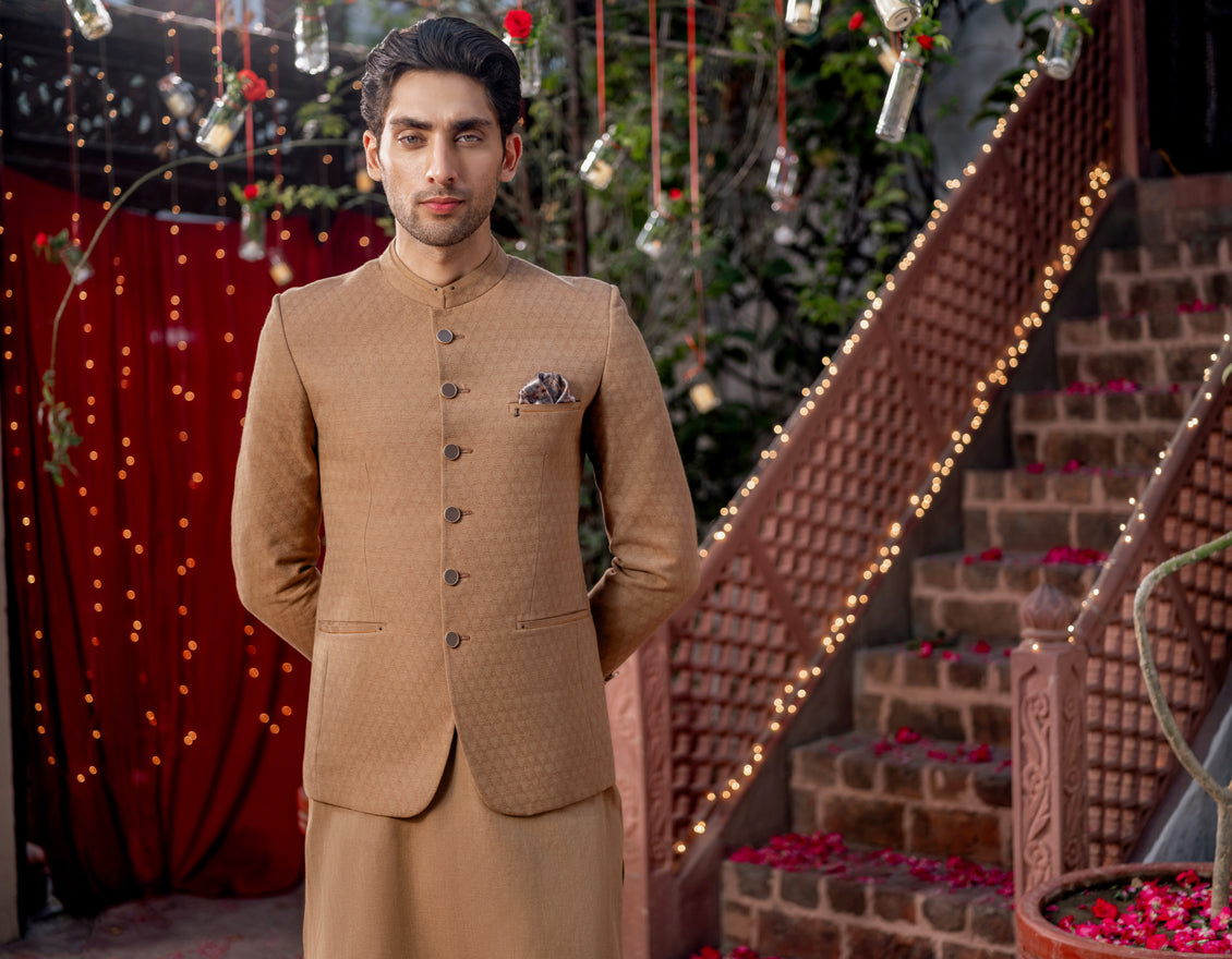 Paired with a kurta and trousers for a sophisticated and polished appearance.