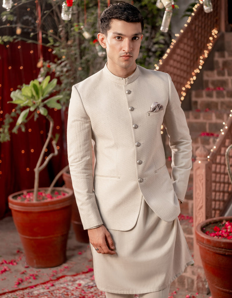 WHITE BLENDED PRINCE COAT | JJPJKP-A-48150/S24/JMR-3361A-FL
