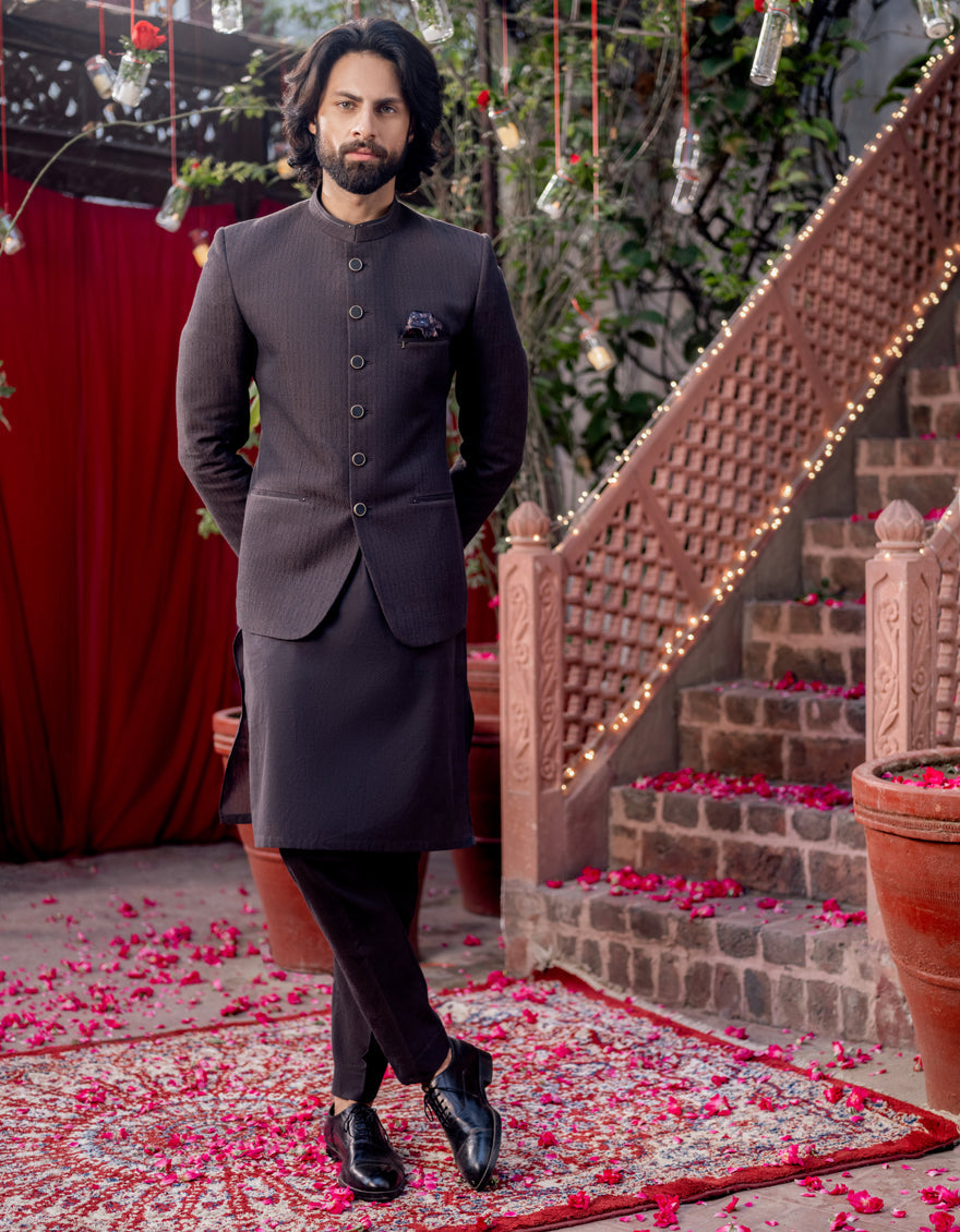 Paired with a kurta and trousers, ensuring a refined and cohesive look.