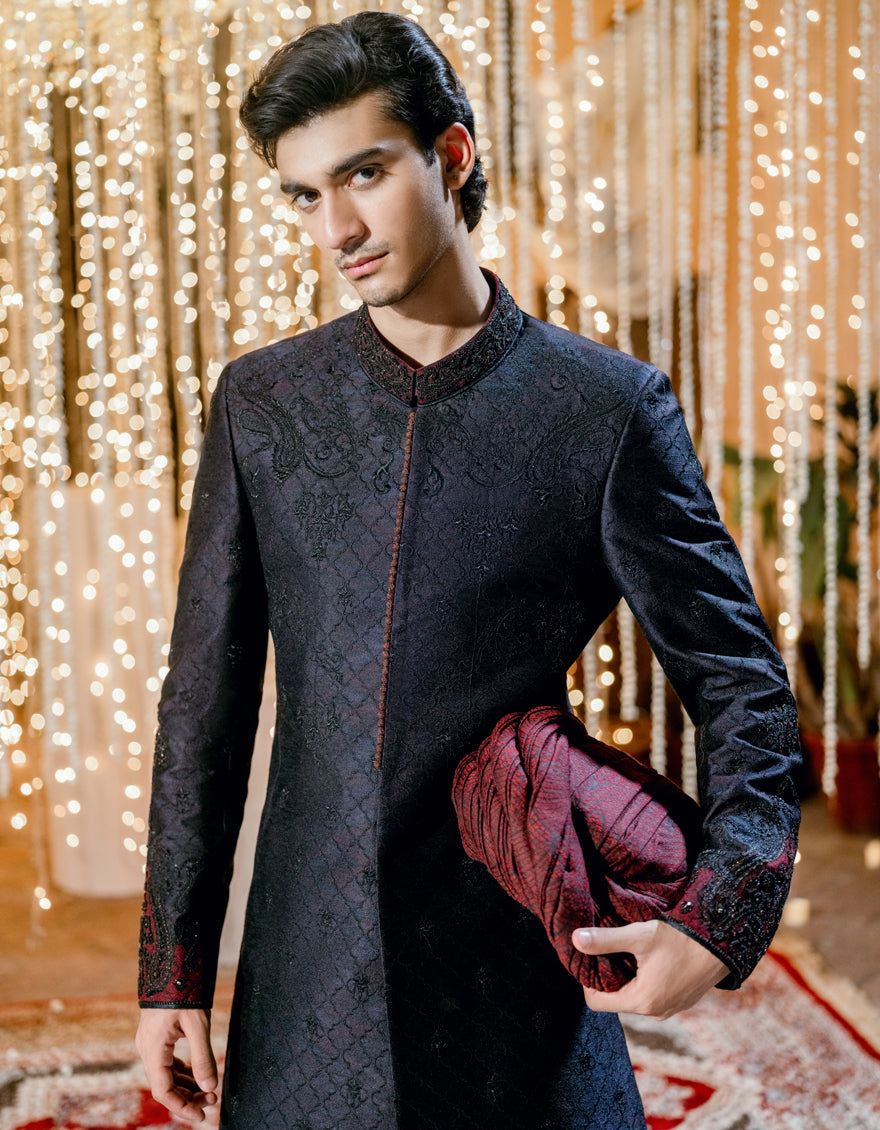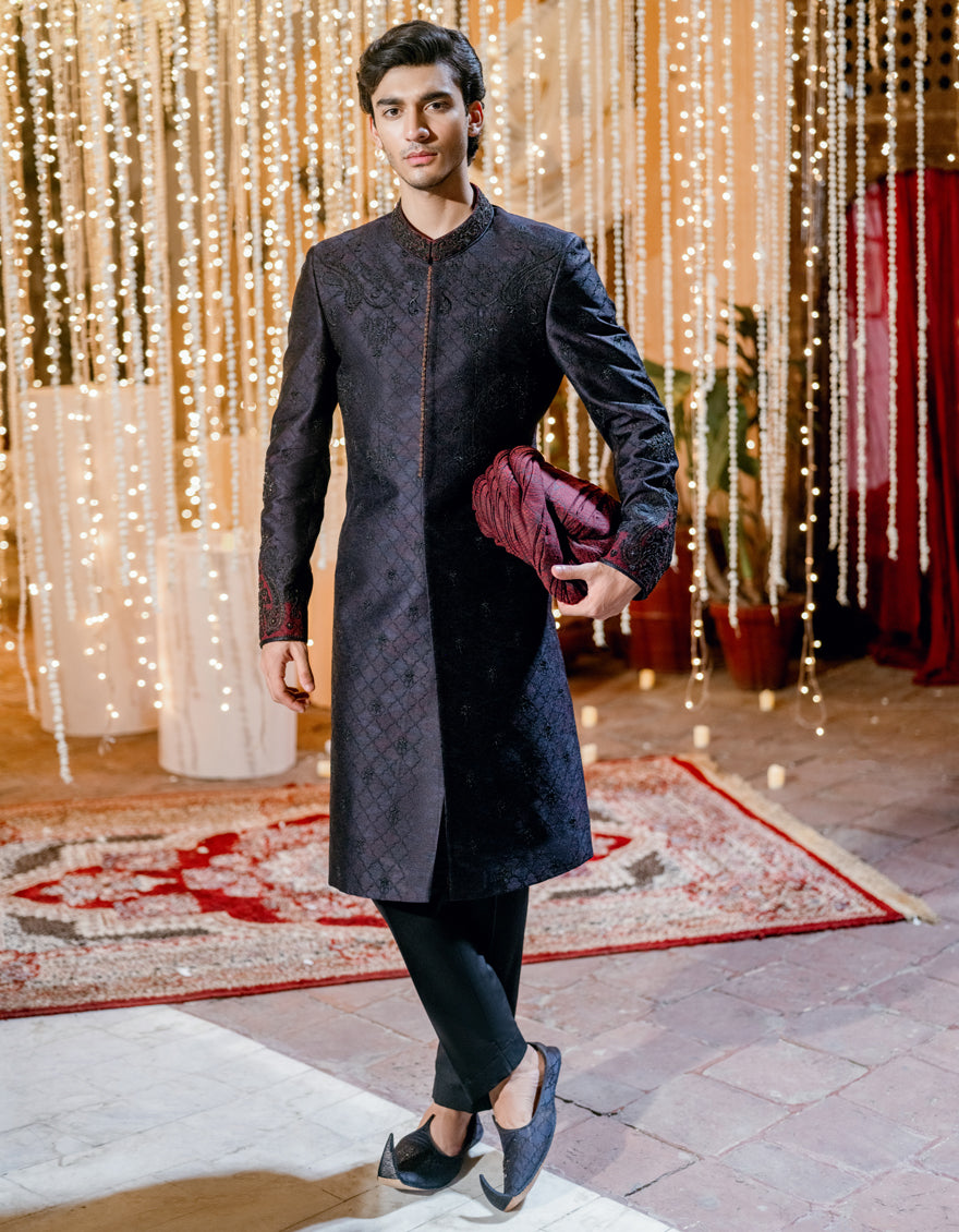 BLACK POLYESTER SHERWANI | JJSW-579/S24/JJ9186-FL