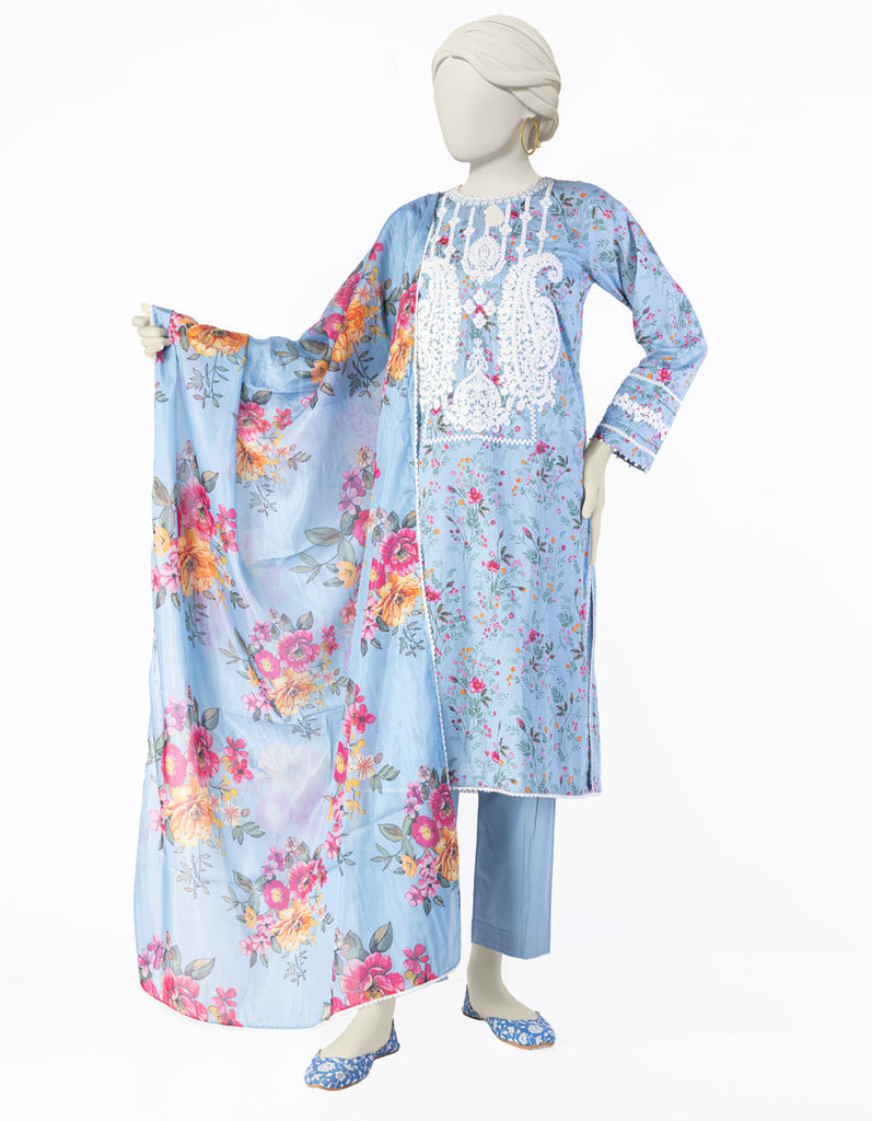 BLUE LAWN 3PC STITCHED | JLAWN-S-25-239/S CHIKENKARI-02