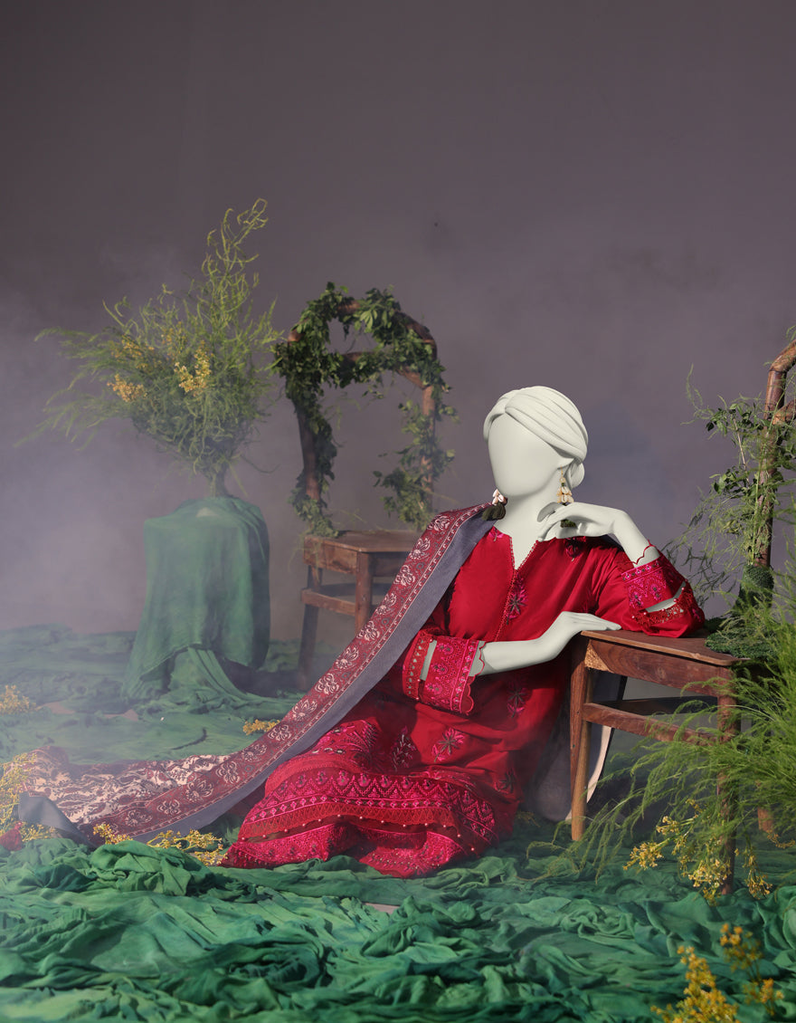 MAROON CAMBRIC 3PC STITCHED | JJPW-W-JW-24-1737 FB