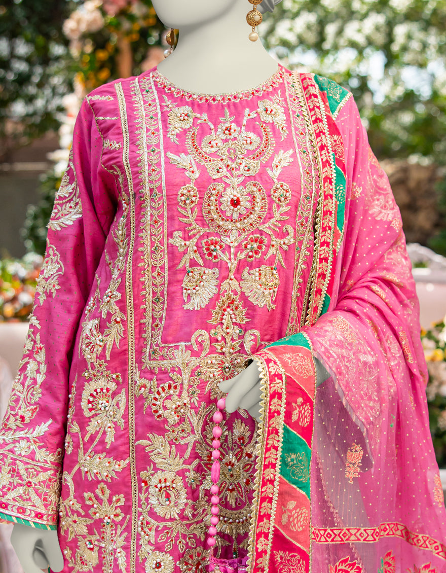 PINK RAW SILK 3PC STITCHED | JJPW-W-JPS-24-3948 F