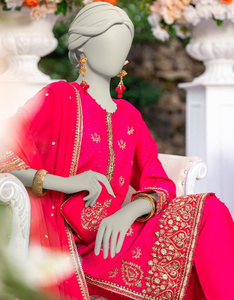 PINK RAW SILK 3PC STITCHED | JJPW-W-JPS-24-3951 F