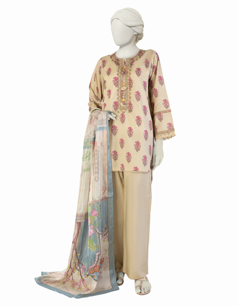 BEIGE LAWN 3PC STITCHED | JLAWN-S-25-189/S TRI