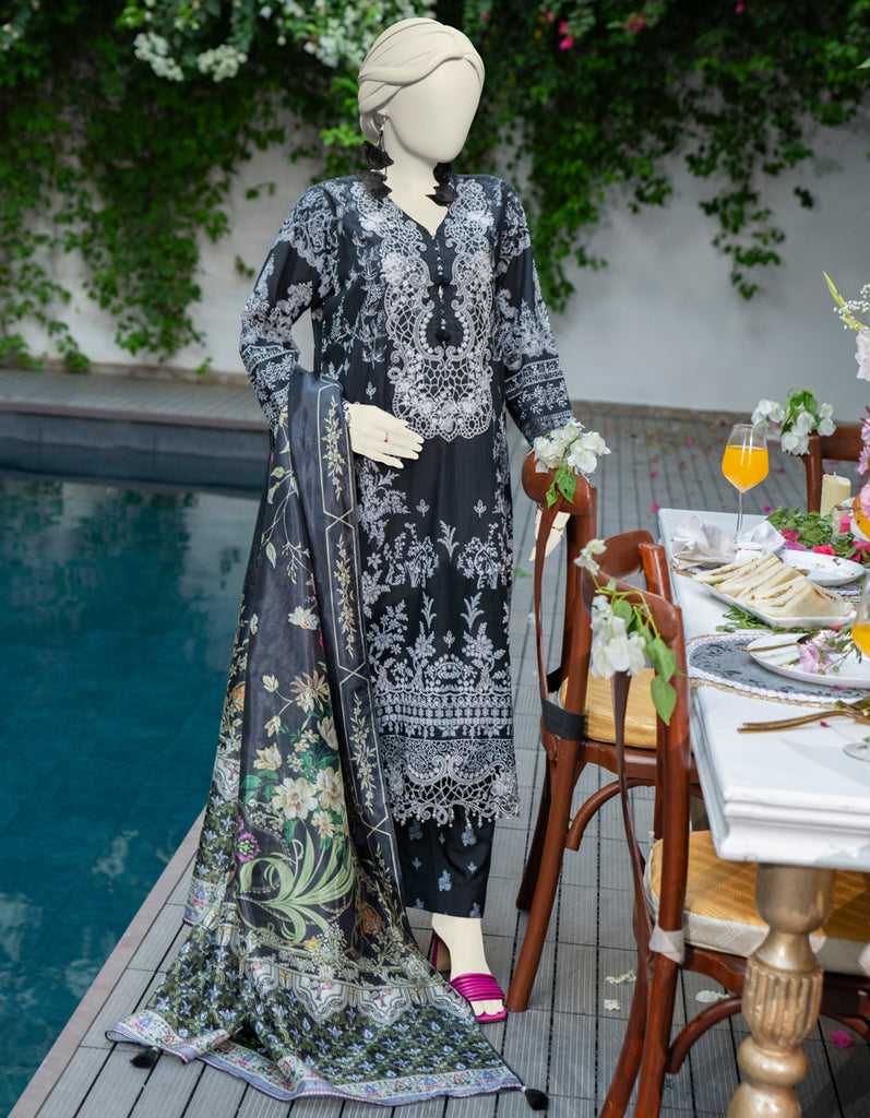 BLACK LAWN 3PC STITCHED | JLAWN-S-25-175/S MON